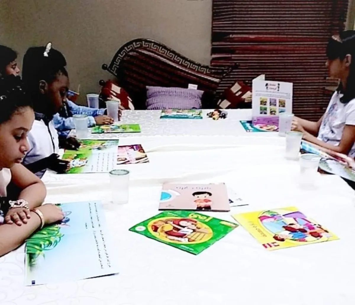 من جانبها أكدت المنسقة ليلى العوفي أن برامج المبادرة تعمل وفق إستراتيجية متبعة في تنفيذها وتشمل قراءة قصص هادفة للأطفال، كل قصة تحمل قيمة وسلوكاً قويماً، واستعمال ألبسة تنكرية لشد انتباه الأطفال، ثم تهيئة أماكن آمنة ومخصصة لجلوس الأطفال، ويمر الطفل فيها بعدد من المراحل؛ لتهيئته وإثراء حصيلته اللغوية.