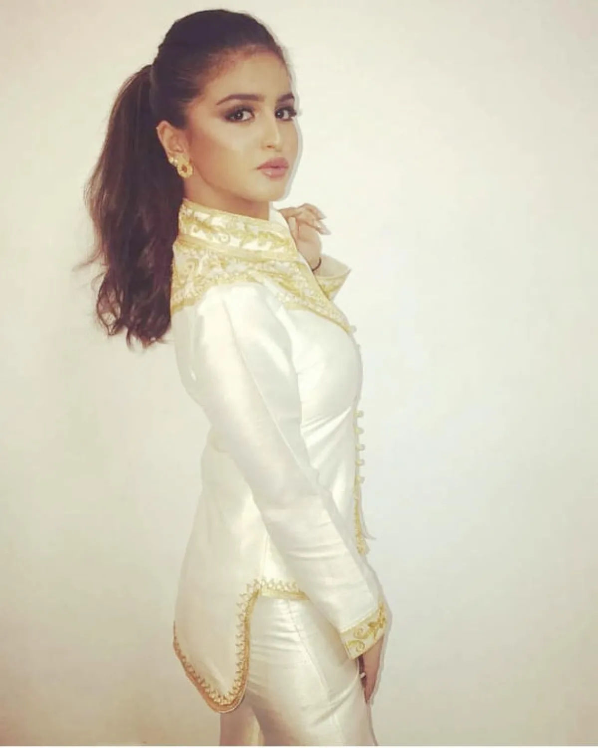 ولا تخلو إطلالات حلال الترك من الفخامة، فتمكنت المراهقة الصغيرة أن تلفت الأنظار عندما أطلت ببدلة بيضاء من الساتان ومطرزة بالذهبي، لاسيما وأن طريقة التطريز جاءت من الطراز الخليجي المميز.