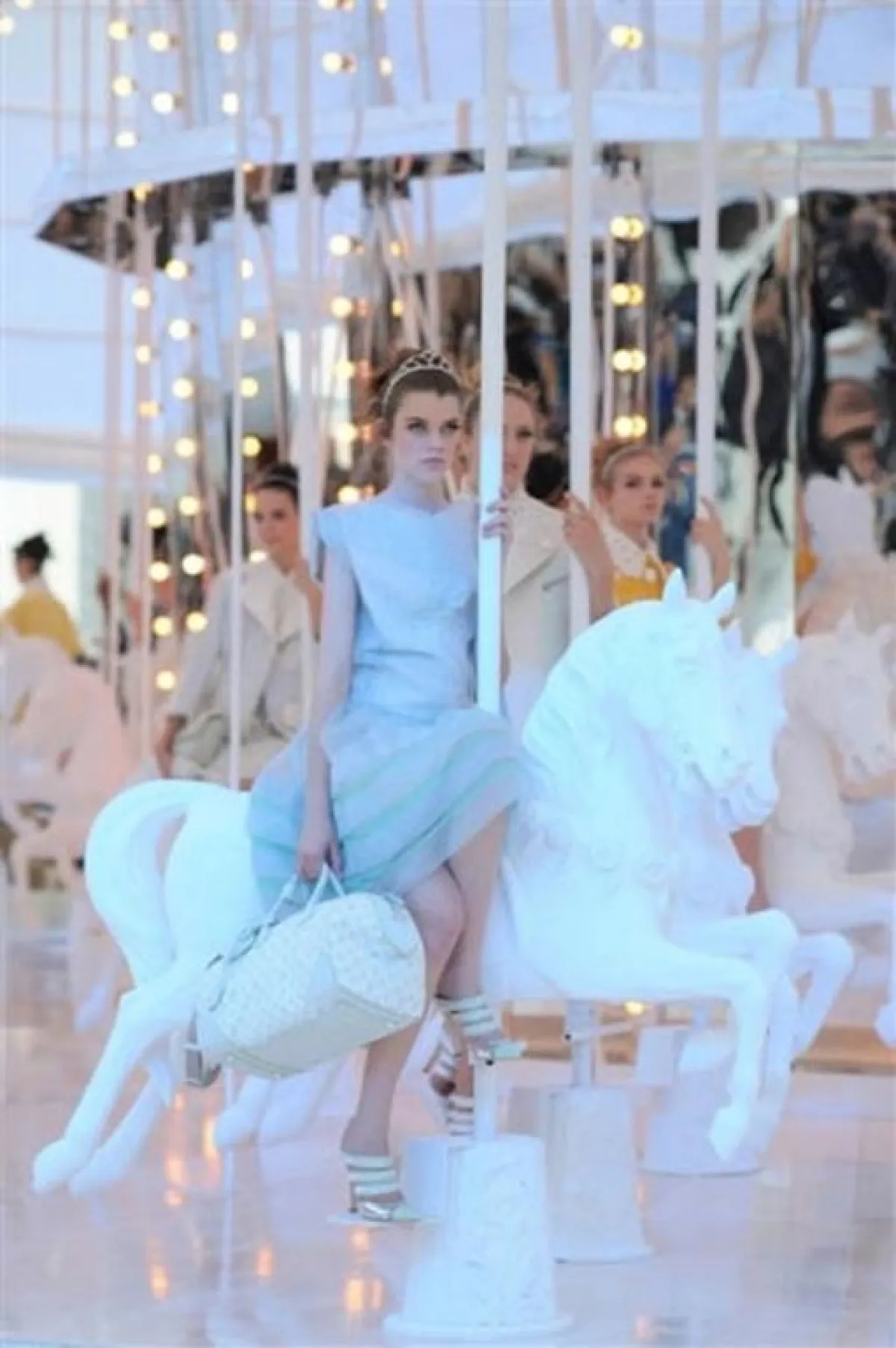 عرض لويس فيتون 2012 حاكى لعبة الأحصنة، وظهرت العارضات على الأحصنة الخشبية في لعبة الملاهي، وارتداء العارضات للريش أعلى رؤوسهن أضاف المزيد من الغرابة على العرض.