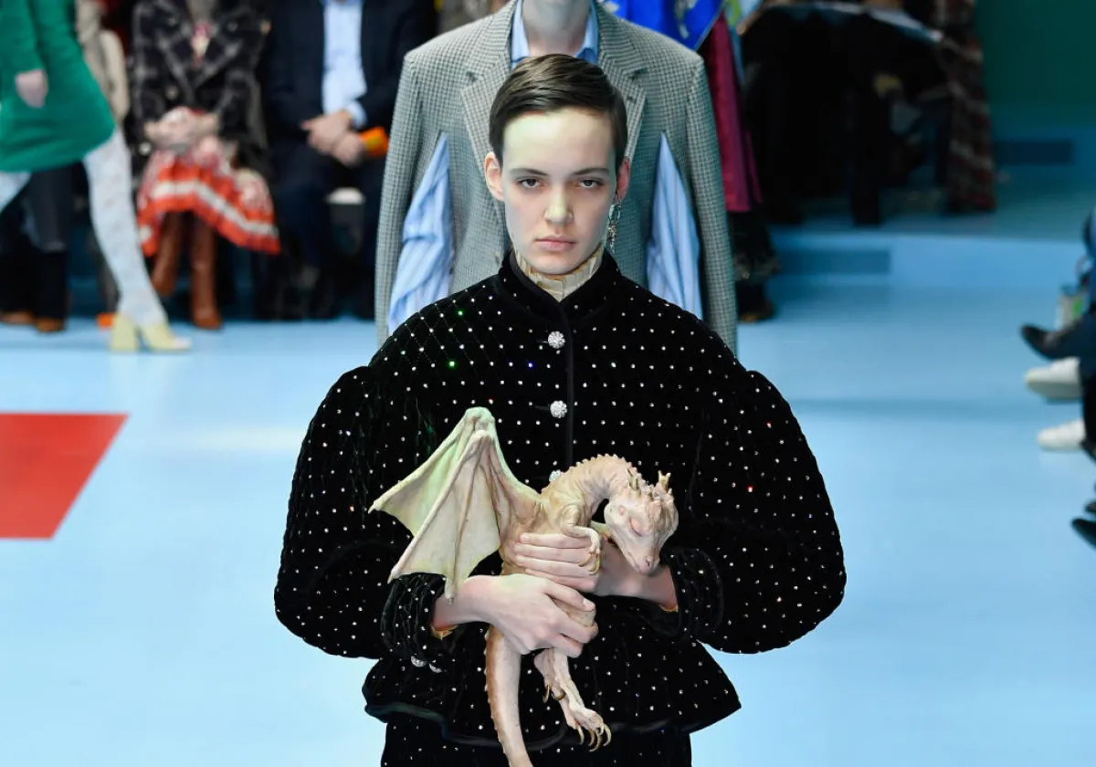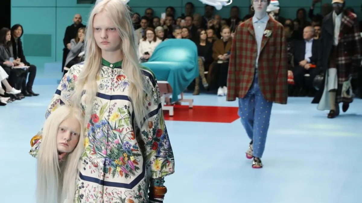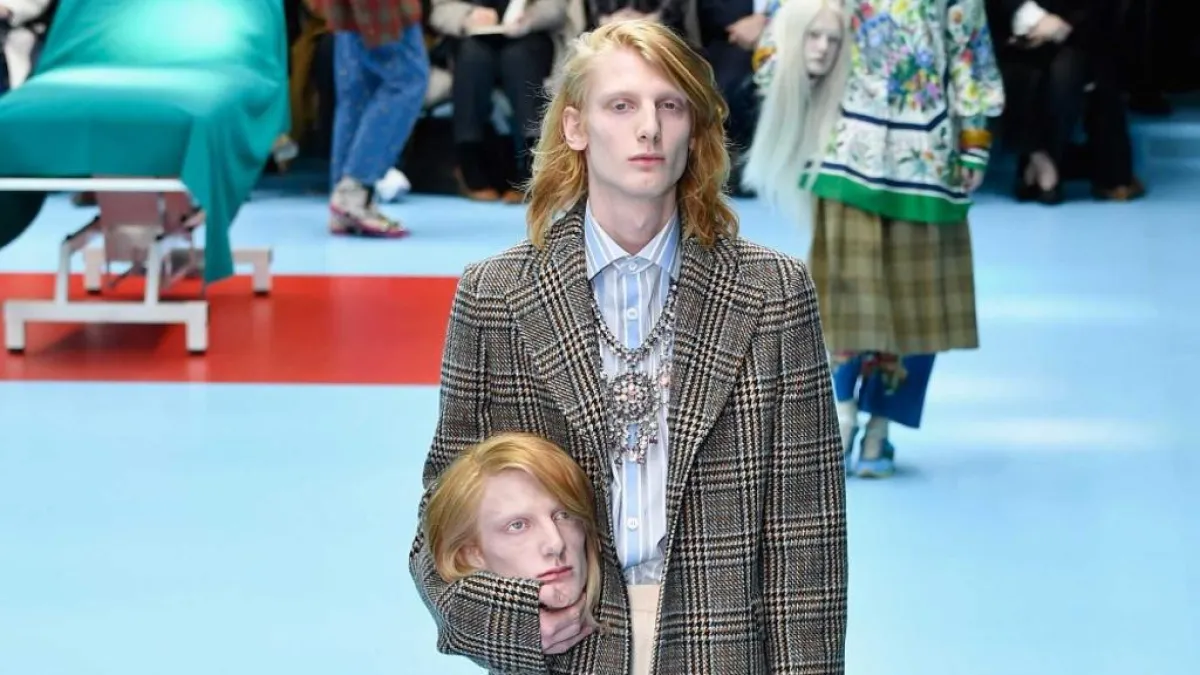 قدم مصمم الأزياء العالمي أليساندرو ميشيل مدير شركة غوتشي، عرض أزياء عبارة عن عارضين أزياء يحملون رؤوس بشرية أو رؤوس حيوانات مرعبة بشكل مثير للسخرية والرعب في نفس الوقت، كانت هذه التشكيلة هي مجموعة غوتشي لخريف/ شتاء عام 2018، بعد سلسلة من العروض غريبة الأطوار، التي تضمنت ربطات عنق مخملية، حقائب مروحية على الخصر، أحذية ذات كعب عال من السبعينيات، وقد كانت خشبة العرض عبارة عن منصة خضراء تشبه غرف العمليات، وكانت الموسيقى التصويرية خلال العرض، تتضمن أصوات هواتف، ورنين مؤقت ساعات، بثت على مكبرات الصوت.