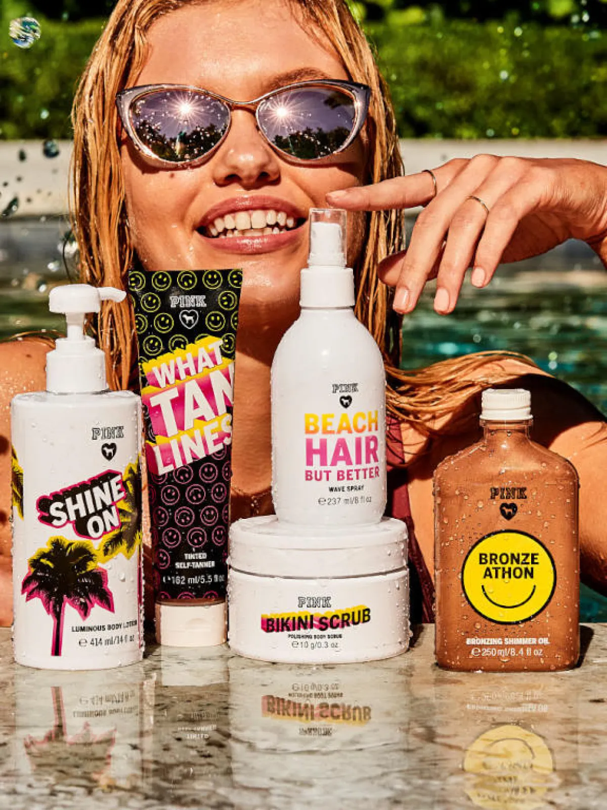 أضيفي إلى إطلالتك المزيد من التألق مع تشكيلة الجمال من ڤيكتوريا سيكريت بينك التي تعمل على تغذية بشرتك وانعاشها بأروع العطور. وتتوفر التشكيلة الكاملة من منتجات العناية بالجسم، بلإضافة إلى كرات الإستحمام الفوارة، والبخاخات المعطِّرة، والعطور، وأقنعة الوجه، وغيرها في جميع محالت ڤيكتوريا سيكريت وڤيكتوريا سيكريت بينك. إذا كنت من محبي العطور المستوحاة من أجواء شواطئ الجزر، فهذه التشكيلة حتماً ستناسبك.
