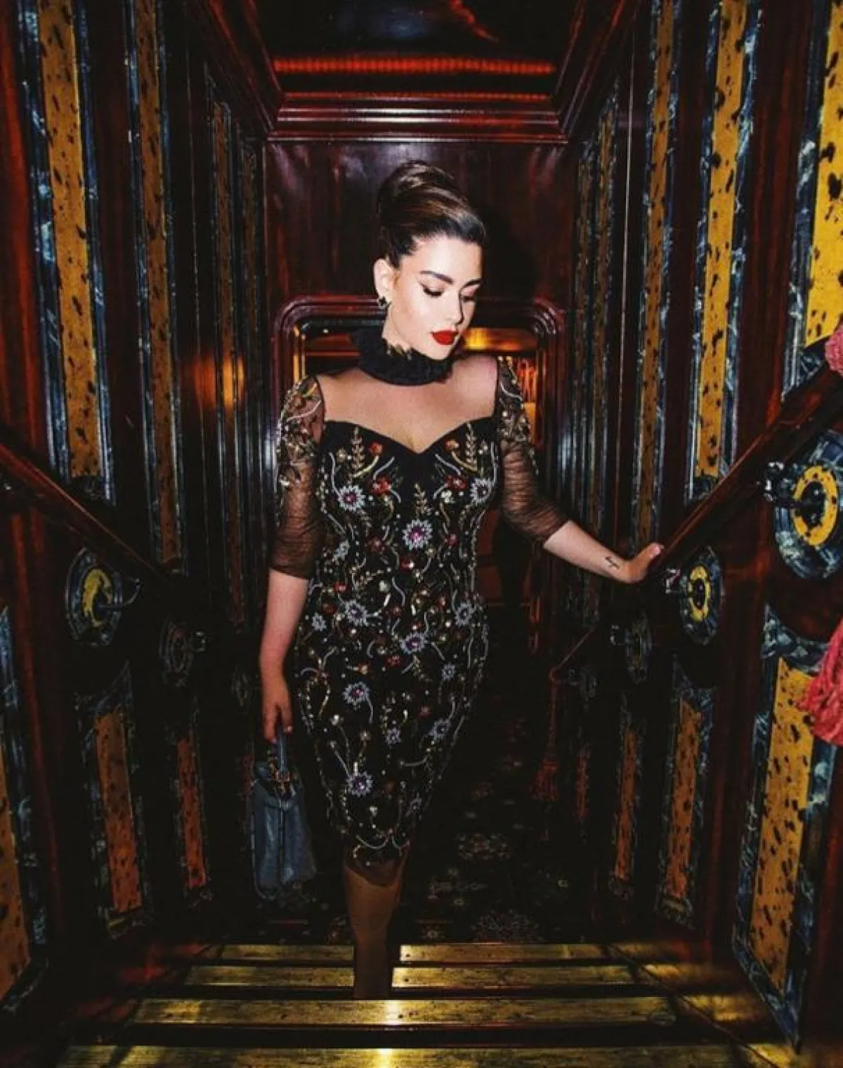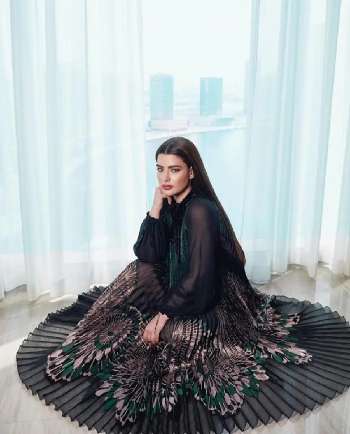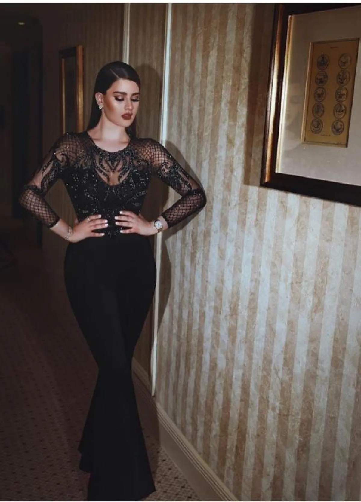 ولمناسبة رسمية، ارتدت روان جمبسوت أسود بقبة مدورة وأكمام طويلة من الشبك المطرز، مزيّنًا بتطريزات وترتر على الصدر، ضيّق طبعًا على الخصر، ويستمر بقصة ضيّقة إلى أن يزداد عرضه من الركبة إلى الأسفل، نسقته مع أقراط ناعمة، وساعة وإسوارة وخاتم واحد، وتسريحة شعر مالس بفرق جانبي، زادتها جمالًا، فبدا قوامها متناسقًا ولافتًا.