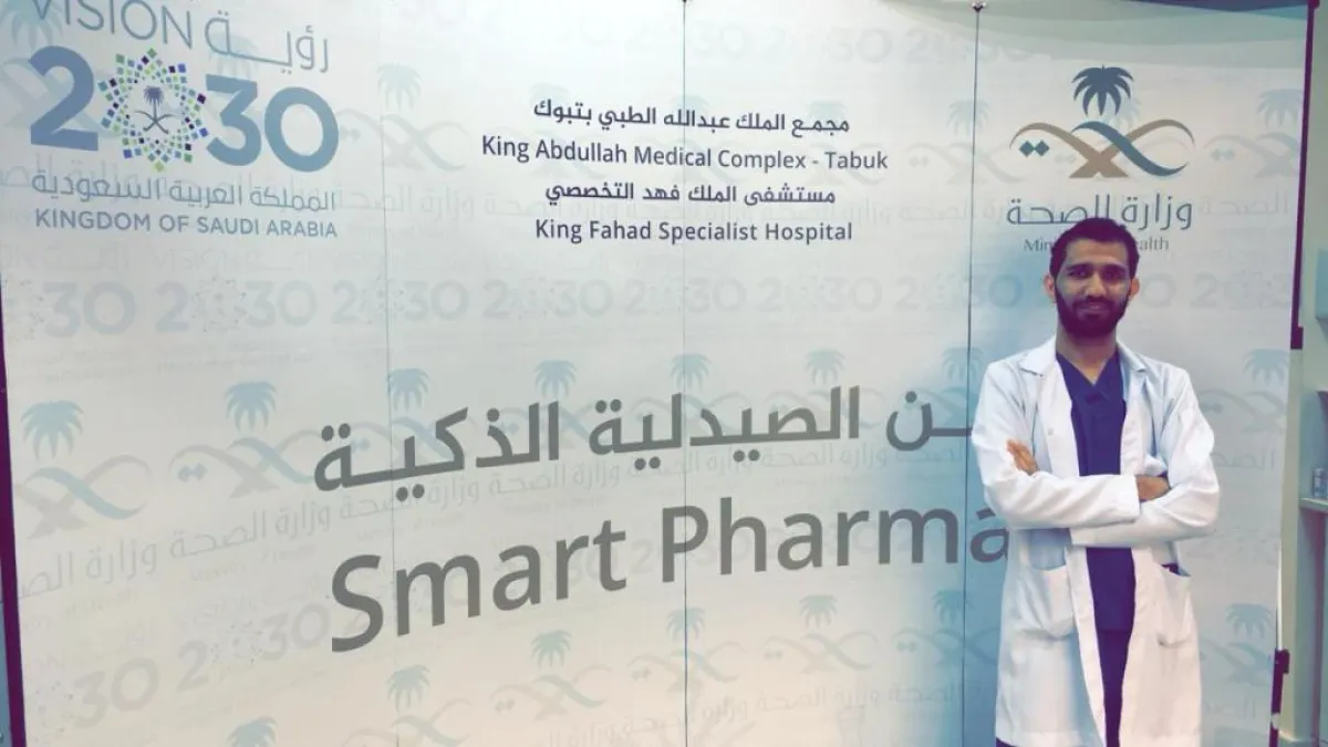 كانت البداية مع محمد عمر الشريف، مدير الصيدلية الذكية في مستشفى الملك فهد التخصصي بتبوك، الذي تحدث عن عمل الصيدلية الذكية، وقال: نسعى في مستشفى الملك فهد إلى أن تكون خدماتنا وفق أعلى مستوى، بما يتماشى مع "الرؤية السعودية ٢٠٣٠"، ومن هذا المنطلق، وبعد حصولنا على موافقة وزارة الصحة على الطلب، الذي تقدم به الصيدلاني محمد التيماني، مدير الصيدلية السابق، بتوفير الصيدلية الذكية، جرى تخصيص روبوت صيدلي بسرعة كبيرة، والتي تهدف إلى توفير الوقت والجهد على الصيدلي ليتفرغ لدوره الرئيس، وهو التثقيف الدوائي، وإعطاء المعلومات والنصائح الطبية اللازمة للمريض، بالشكل المناسب وفي أسرع وقت ممكن؛ لكيلا يضطر إلى الانتظار طويلاً؛ فبمجرد إعطاء المريض رقم الملف إلى الصيدلاني، ستظهر لديه الوصفة المكتوبة من قِبل الطبيب، ويراجعها للتأكد من صحتها، وبضغطة زر واحدة، سيبدأ الروبوت في تجهيز الوصفة كاملة بثوانٍ معدودة، وللروبوت قدرة على صرف ١٥٠٠ علبة دواء في الساعة، ونسبة الخطأ في عمله صفر في المئة، كما أنه يخزِّن ٢٠ ألف علبة دواء داخله، وقد لاحظ جميع المرضى فرقًا كبيرًا بعد اعتماده؛ حيث إنهم كانوا في السابق ينتظرون من ١٥ إلى ٣٠ دقيقة للحصول على وصفتهم، أما الآن؛ فإن الدواء يحضَّر في ١٥ ثانية فقط، ويبقى أن يشرحه الصيدلي للمريض بمعدل دقيقتين تقريبًا ودون أي خطأ طبي، كما أن ترتيب الأدوية في الصيدلية، ومراجعة تواريخ انتهائها، أصبح يتم دون أي تدخل بشري.