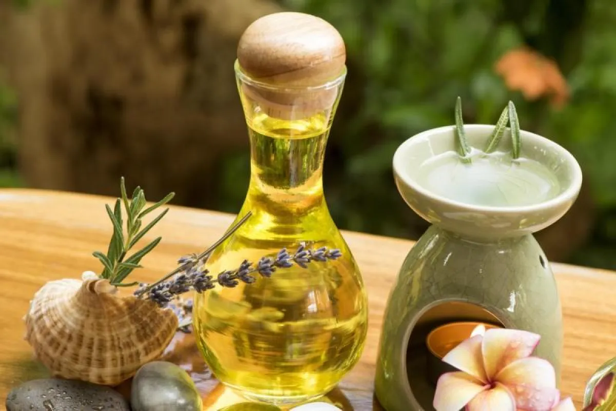 20-40 قطرة من أحد هذه الزيوت (الكاموميل، الليمون، الشمر، اللافندر، الياسمين، الورد).