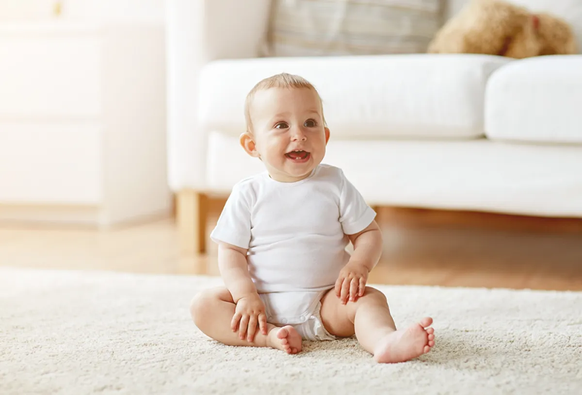 معظم الأطفال يجلسون وحدهم ما بين الشهر الخامس والتاسع.