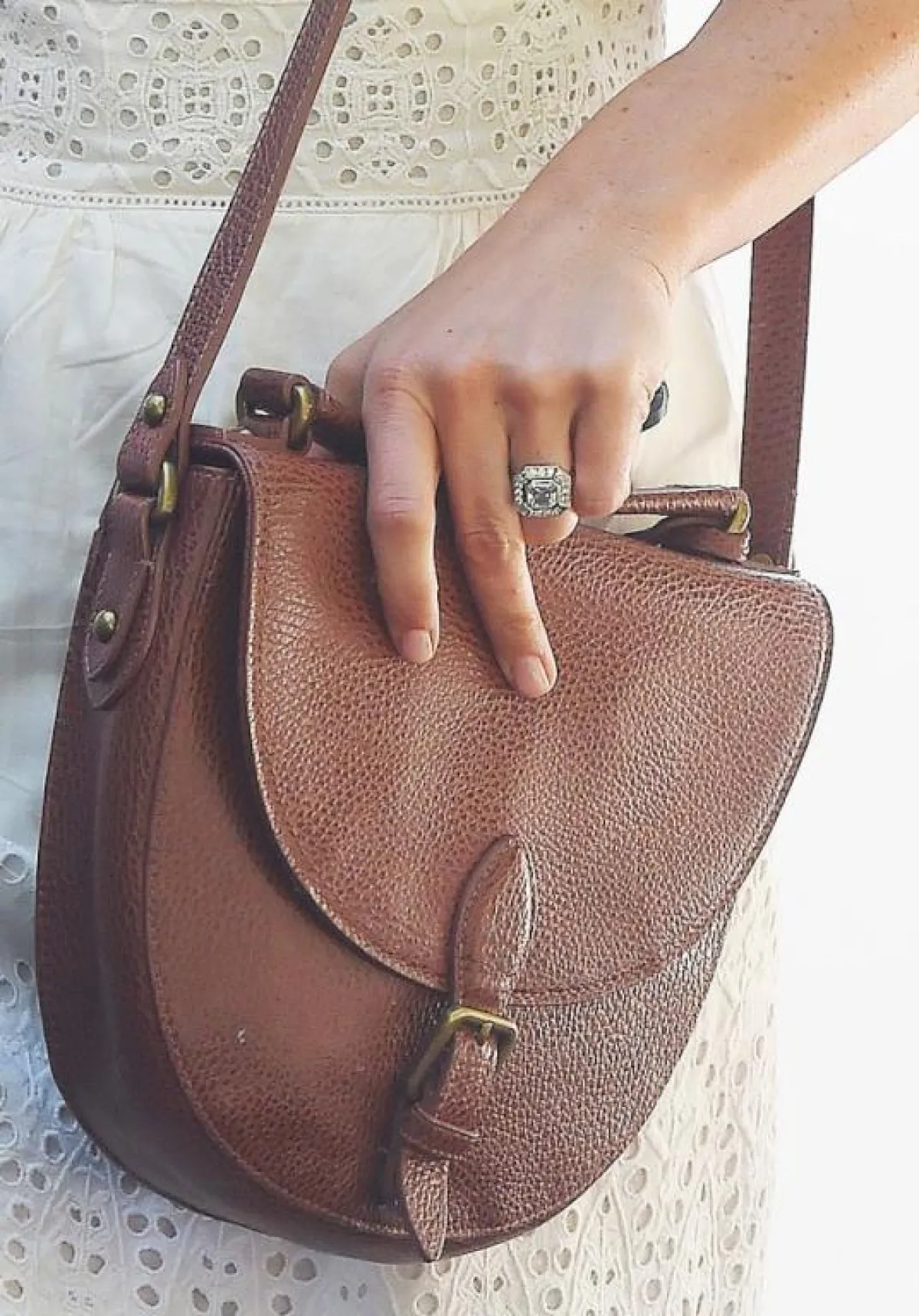 الخاتم: حجر كبير من الماس المقطوع، تحيط به مجموعة من الماس الأصغر.