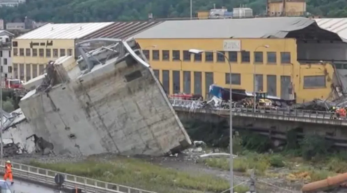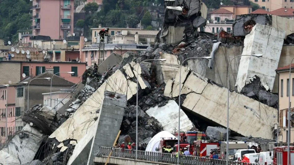 وأظهرت مشاهد التلفزيون وسط الضباب صوراً لجسر "موراندي" الذي انهار جزء كبير منه عند الظهر، وتحدثت وسائل الإعلام الإيطالية عن انهيار 200 متر من الجسر الموجود في منطقة صناعية في غرب جنوى.