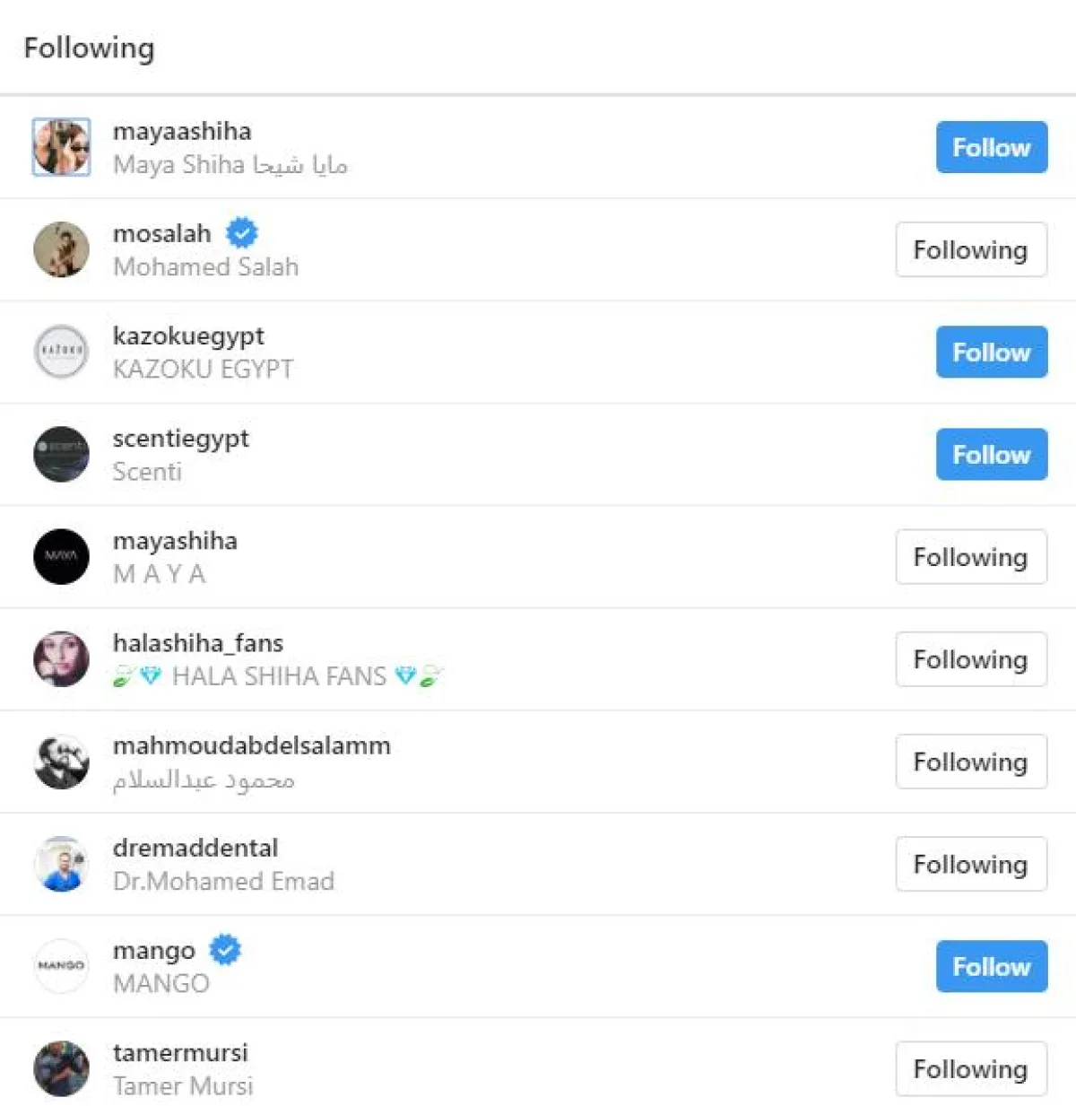 دشنت الفنانة العائدة من الاعتزال حلا شيحة أول حساب رسمي لها على موقع إنستقرام، وقررت للوهلة الأولى متابعة 25 فرداً فقط منهم النجوم كندة علوش وهشام ماجد والمنتج تامر مرسي والكاتب تامر حبيب وشقيقتيها هنا ومايا ورشا شيحة، ودنيا سمير غانم والمخرج عمرو سلامة والفنانة إسعاد يونس، والمثير أنها تراجعت قبل انتهاء اليوم الأول وحذفت متابعة كندة ودنيا وهشام ماجد.
