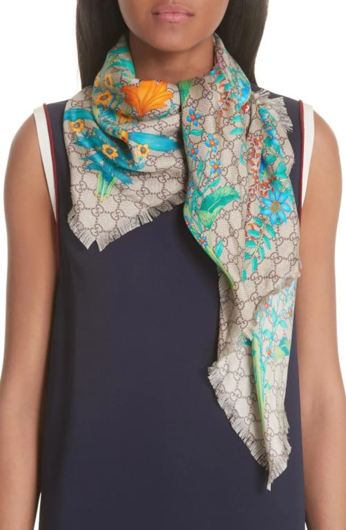 ظهرت الأقمشة المطبوعة بالورود متنوعة الحجم هذا العام من خلال قطع مختلفة، سواء فساتين أو تنانير صيفية، ويبدو أنها ستحافظ على مكانها داخل سباق الموضة ولكن هذه المرة من خلال السكارفات المصممة من الحرير والستان، وقدمت علامة غوتشي GUCCI عدة اختيارات لسكارفات مربعة ومزودة بنقوش الورود المبهجة.