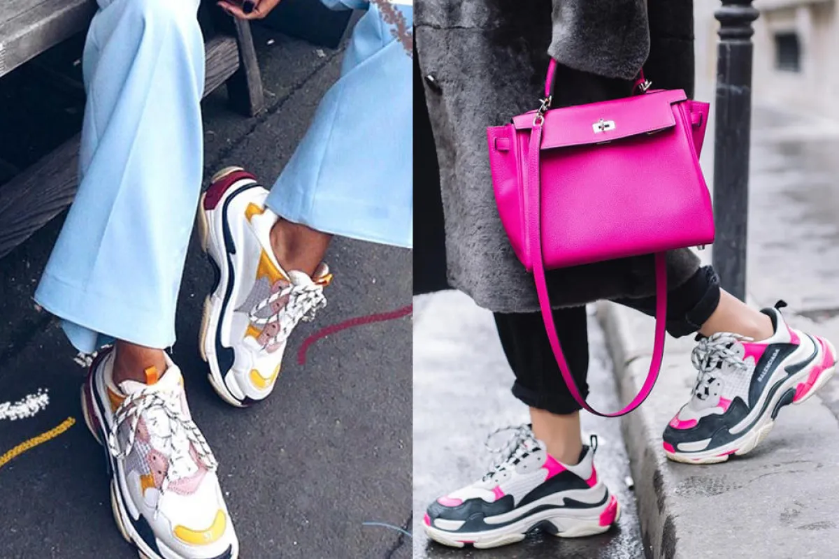 وجاءت الصرعة الأقوى في موضة 2018 حيث اتخذت الأحذية الرياضية اتجاهاً جديداً نحو الجرأة بتصاميم كبيرة الحجم، وبنعل يميل إلى الطابع الرجالي، ولكن تمكنت أيقونات الموضة أن تحولها إلى صيحة رائجة وتقدمها بشكل أنيق وعصري جعلها اختيار يومي، لاسيما بعد الاختيارات المتعددة التي قدمتها علامات الموضة الكبرى وعلى رأسهم علامة بالنسياغا Balenciaga التي خرجت بتصميم لحذاء رياضي ضخم يقوم على تداخل الألوان الصيفية القوية مثل الوردي والأصفر والأزرق الفاتح، ثم دخلت السباق علامات أزياء غير متوقعة مثل برادا، غوتشي، وعادت من جديد علامة فيلاFila لتنافس بحذاء رياضي ضخم.