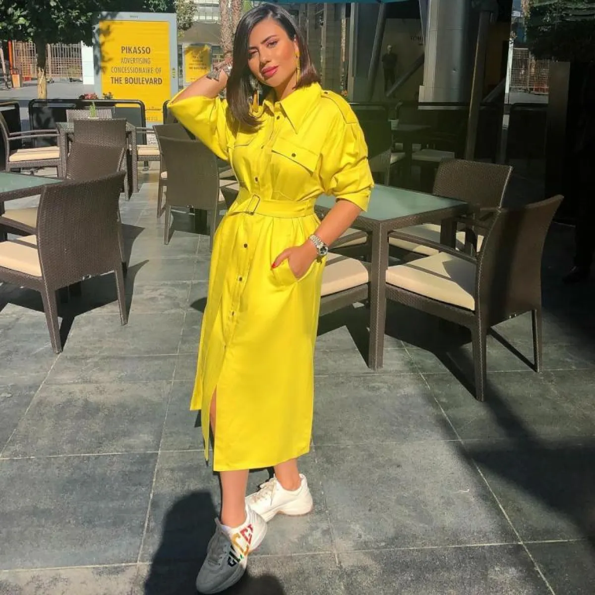 ديما الأسدي وإطلالة كلاسيكية مع حذاء رياصي ضخم