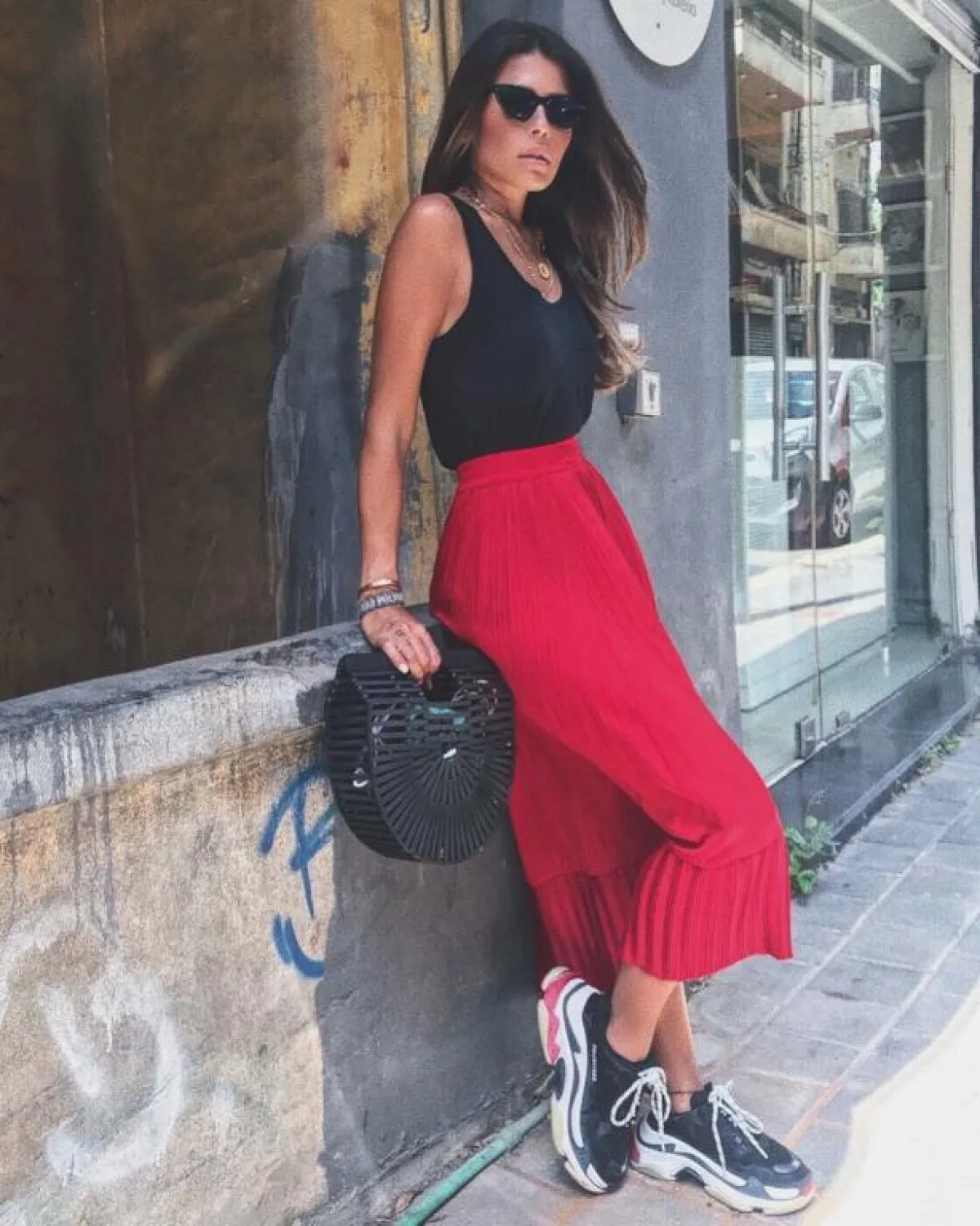 تمكنت الإعلامية نهى نبيل من أن تكسر قاعدة أن الحذاء الرياضي الضخم لا يليق بالمرأة القصيرة، فاختارته في عدة إطلالات ونسقته مع الجينز ومع التنورة الكاجوال متوسط الطول، وجاءت في كل الاختيارات موفقة. أما لانا الساحلي فنسقت حذاء بالنسياغا الرائج مع إطلالة كاجوال لجيمبسوت من الكتان المُقلم بالطول، ولكن كانت الأكثر عشقاً لهذه الصيحة هي المدونة آسيا التي تفضل الإطلالات العصرية والعملية. لم تكن آسيا المدونة المحجبة الوحيدة التي اختارت الحذاء الرياضي الضخم بينما اعتمدته أيضاً المدونة سها طه ولكن بطريقة مختلفة تماماً، حيث نسقته مع بدلة باللون الأحمر لتمزج بين صيحتين يتصدرا الموضة، ورغم أن البدلة اختيار كلاسيكي نوعاً ما إلا أن تنسيقها مع الحذاء الرياضي بهذا الحجم جاء أكثر عصرية.