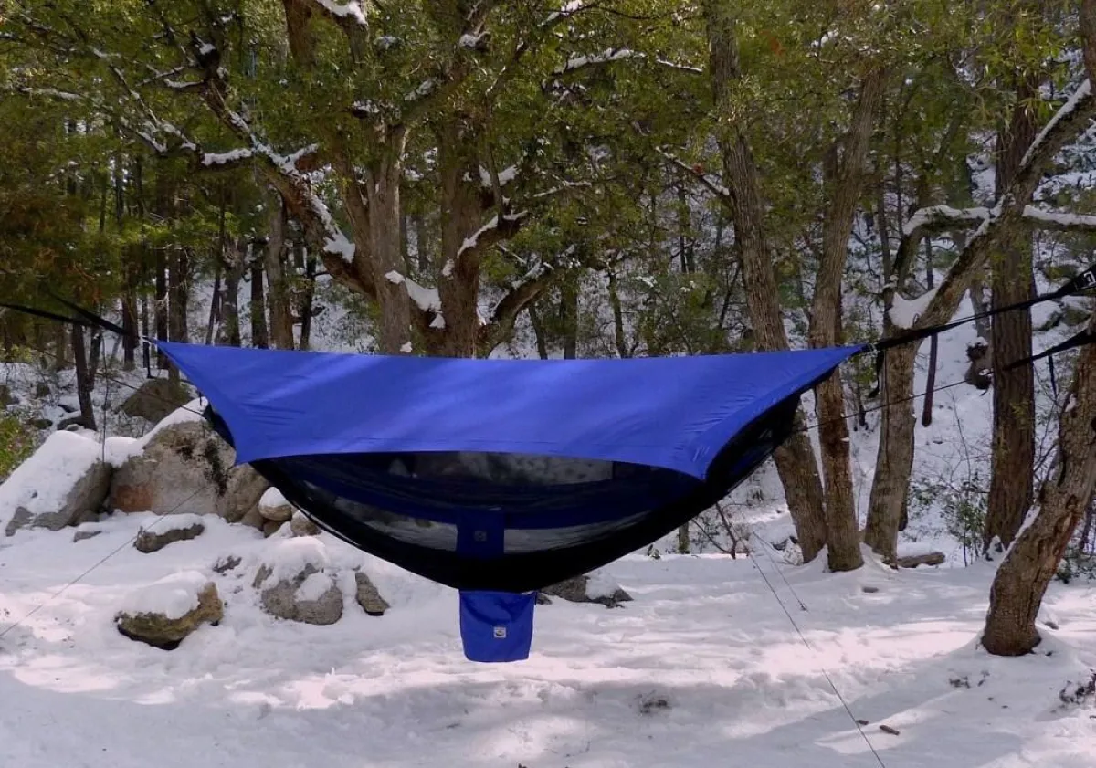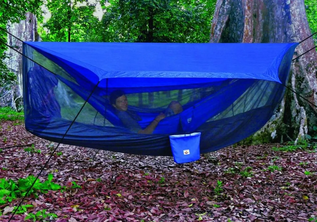 وتوفّر هذه الخيمة مساحة كافية للمخيّمين لتعليق حقائب الظهر على الأرجوحة، تلافياً لئلا لتتّسخ عدتّهم وتبقى جافّة.