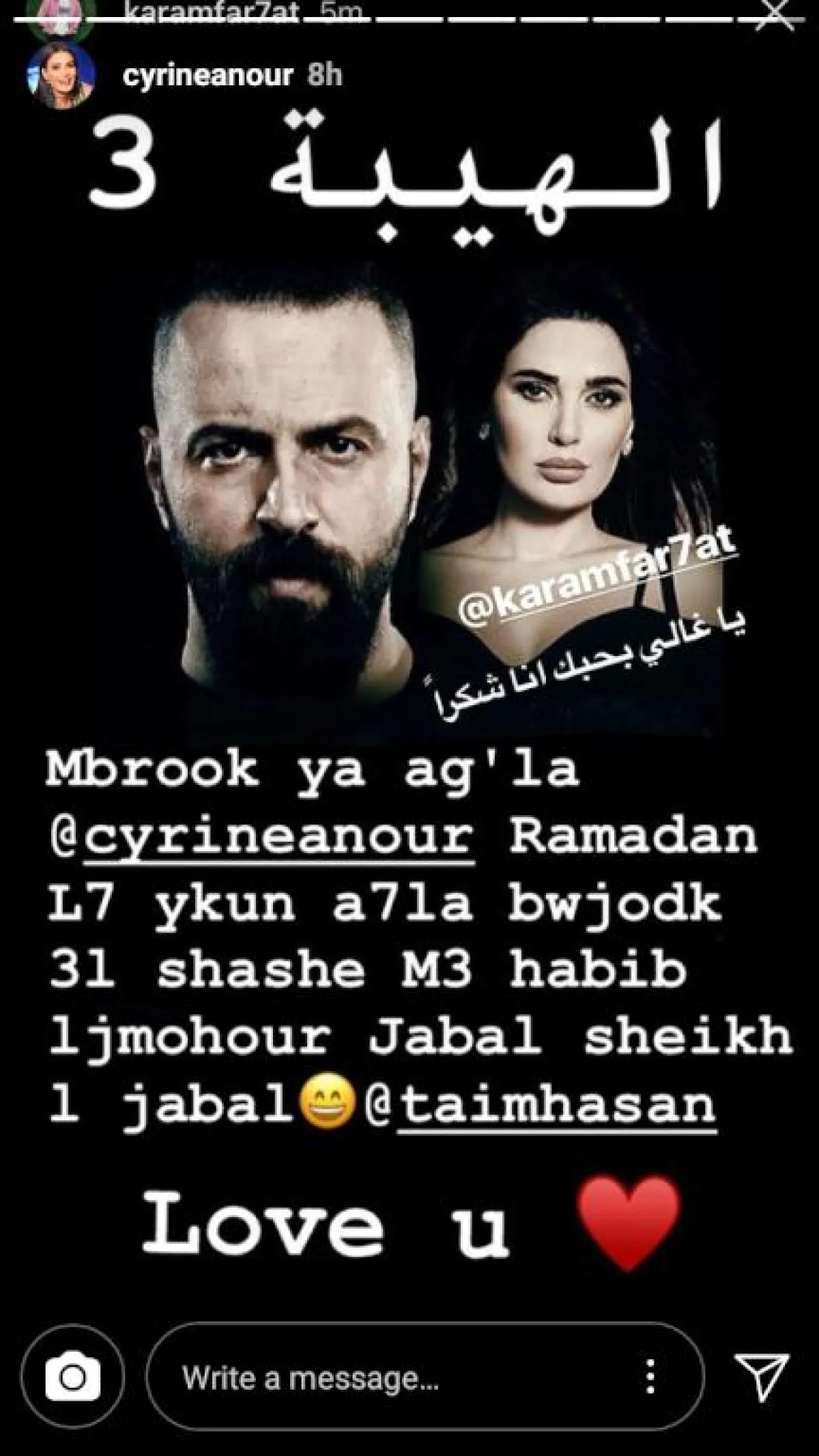 وكانت سيرين عبد النور قد عبرت عن سعادتها بالمشاركة بالجزء الثالث من مسلسل "الهيبة"، وبالوقوف إلى جانب تيم حسن، كما أعلنت عن ثقتها الكاملة بفريق العمل والمخرج سامر برقاوي والمنتج صادق الصباح.