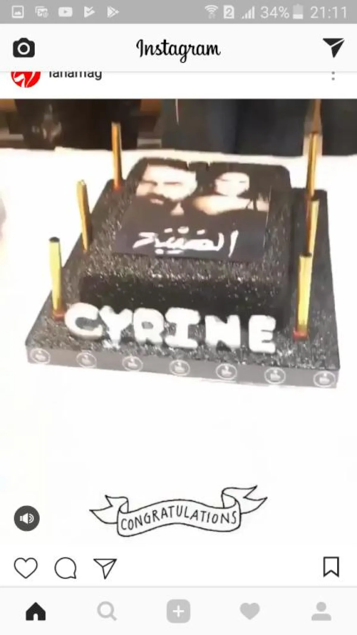 وعلى أنغام أغنية "مبروك" للفنان رامي عياش قطعت سيرين قالب حلوى كبير يحمل صورتها وصورة بطل "الهيبة" الفنان تيم حسن وكذلك أسم المسلسل، وكانت تبدو سعيدة كما أصدقائها بأن إطلالالتها في الموسم الرمضاني 2019 ستكون من خلال مسلسل مشترك سوري- لبناني يحظى بنسبة مشاهدة عالية على مستوى الوطن العربي.