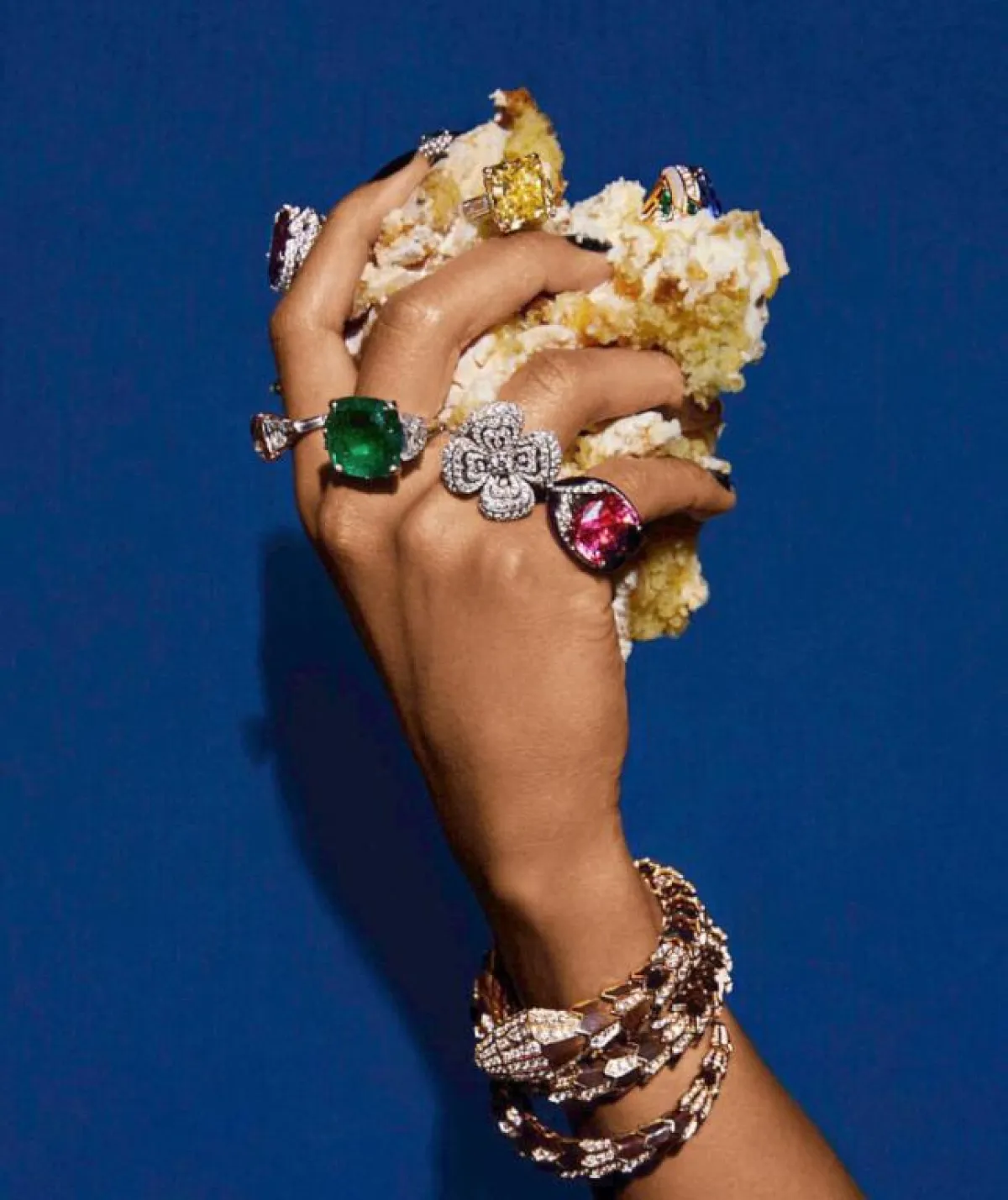 ومن تصاميم الخواتم اللافتة التي سحرتنا بأحجارها الملوّنة، كانت مجموعة الخواتم التي قدّمتها دار بوشرون Boucheron في مجموعة سربانت بوهيم Serpent Boheme والتي تميّزت بتصاميمها المبتكرة وغناها بالأحجار.