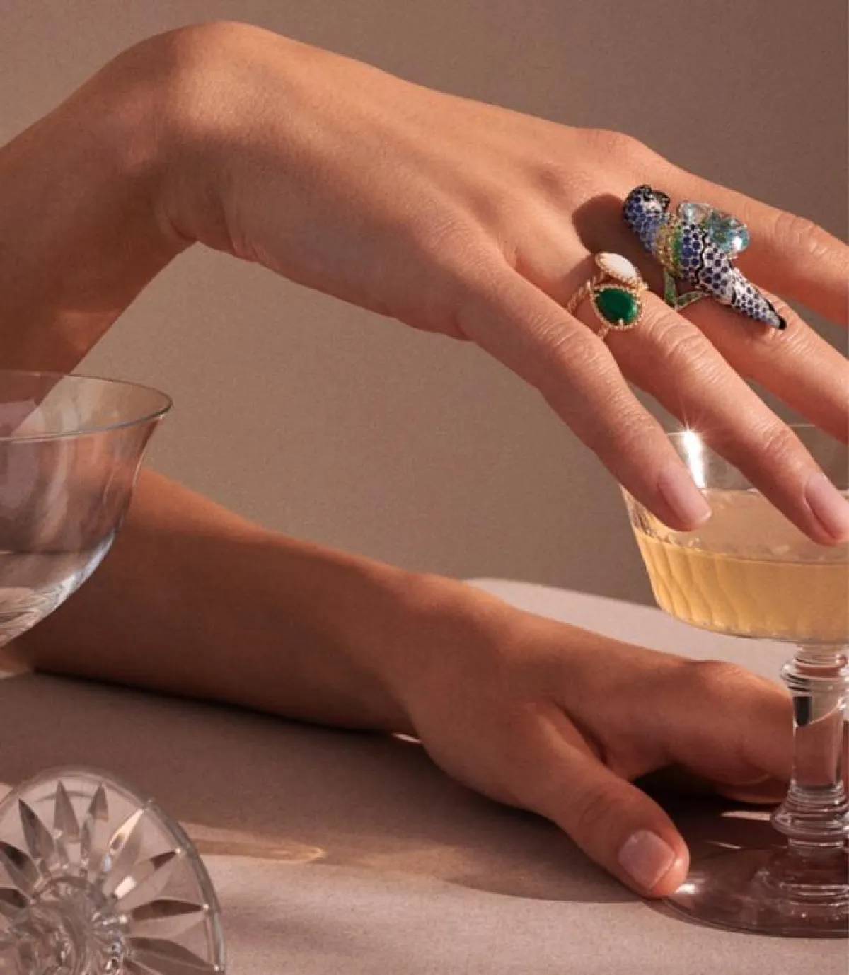 ولعل الخواتم أكثر قطع المجوهرات التي تلفت الأنظار عندما تتزين بحجر ملوّن، خاصة عندما يكون الخاتم بتصميم بارز وضخم. ففي أفخم السهرات والمناسبات، بإمكانك أن تكتفي بخاتم مرصع بحجر ملوّن أو أكثر من حجر، لتجعلي من إطلالتك إطلالة لافتة وغنيّة.