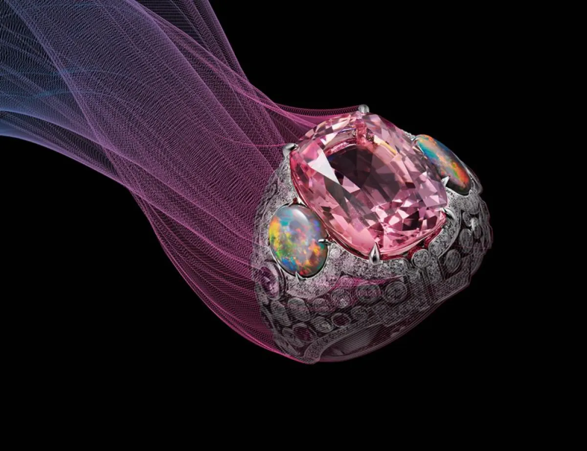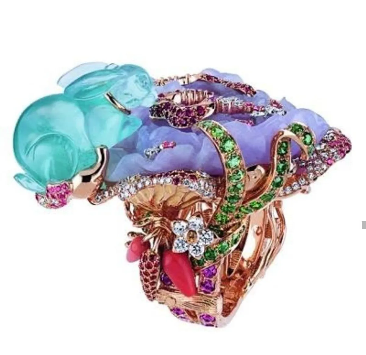 كذلك قدّمت دار كارتييه Cartier ضمن مجموعة مجوهراتها الجديدة كولوراتورا Coloratura هذا الخاتم الساحر والمصنوع من الذهب الأبيض ومرصع بالألماس ومجموعة غنيّة من الأحجار الملوّنة.