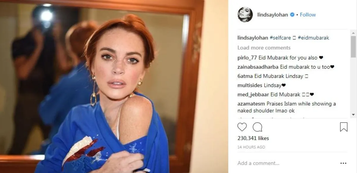 هنأت الممثلة الأمريكية ليندسي لوهان Lindsay Lohan المسلمين من كافة أنحاء العالم، بحلول عيد الأضحى المبارك؟