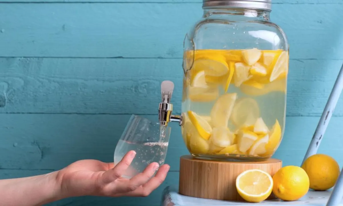 كوب من الماء مع شرائح الليمون الحامض