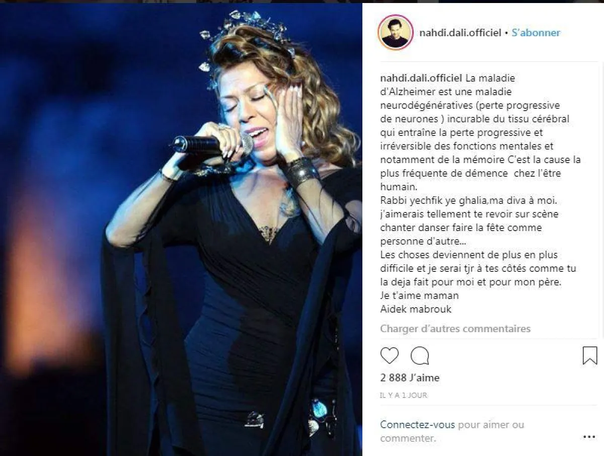 وأضاف في تدوينة له باللغة الفرنسية: "كم هو محبب لنفسي أن أراكِ من جديد على المسرح تغنين وترقصين وتصنعين الفرحة والحفل، كما لا يصنعها أحد مثلك" مستدركًا: "الأشياء أصبحت صعبة وسأكون دائمًا بجانبِك، مثلما فعلتِ أنتِ معي ومع أبي، "خاتمًا بقوله: "أُحبك أمي".