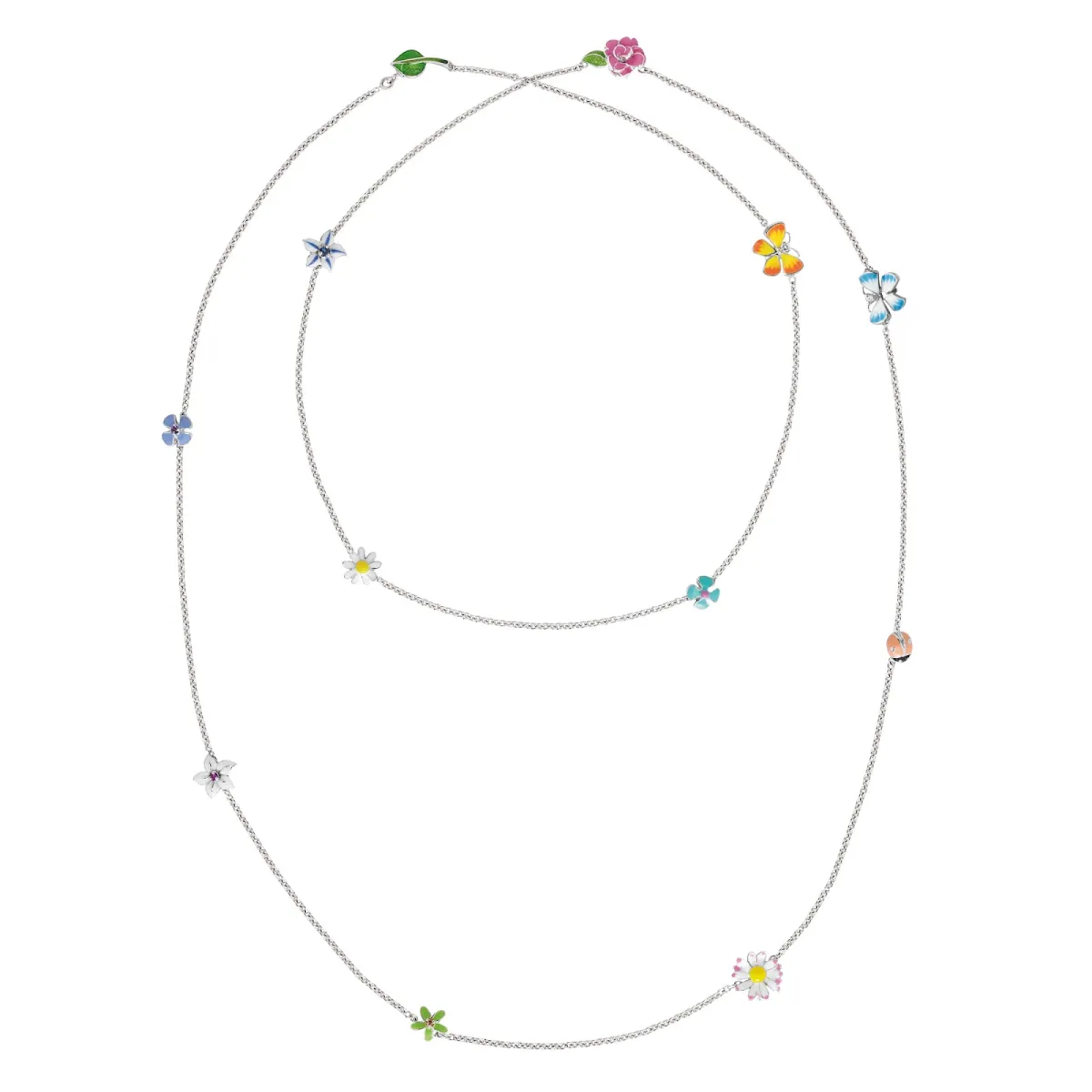 اخترنا لك على سبيل المثال، عقد ديوريت Diorette من ديور فاين جوليري Dior Fine Jewellery وهو عقد مزدوج الطبقات مصنوع من الذهب الأصفر ومرصّع بالأحجار الملوّنة على شكل حشرات وأزهار من الطبيعة. وهو تصميم شبابي مرح يليق بإطلالاتك الكاجوال.