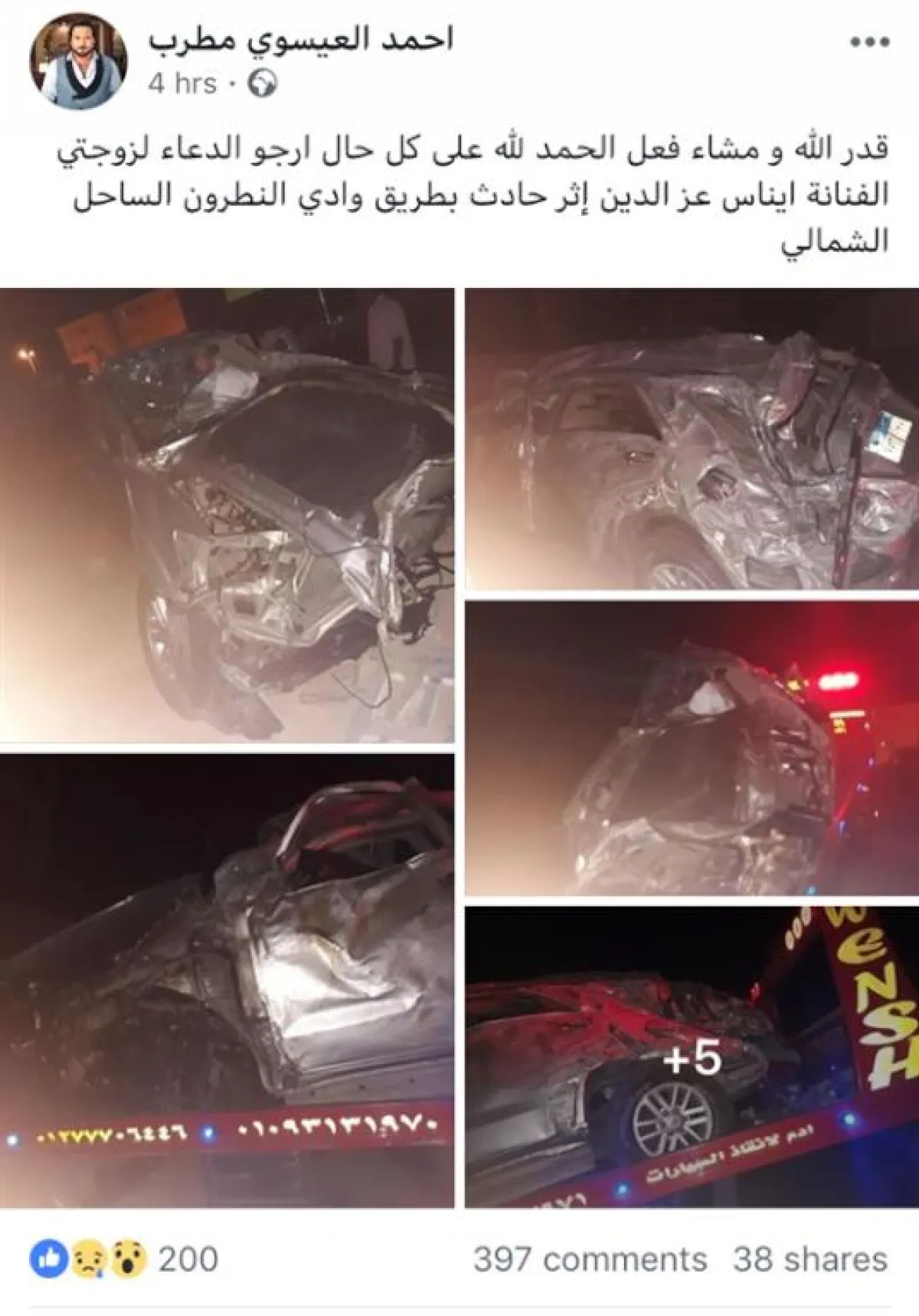 إيناس عز الدين أضافت أنها تعاني أزمة عدم الشعور بذراعها الأيسر، منذ النجاة من الموت المحقق بحادث سيارة، وخضعت لعلاج مكثف على أمل أن تستعيد قدرتها على التحكم في ذراعها مع الوقت، ولكنّ الأمور تزداد سوءًا، ولهذا قرر الأطباء الخضوع لجراحة عاجلة في مصر، ولكن هناك جراحة أخرى دقيقة في الأعصاب يجب أن تُجرى في ألمانيا، ومن المقرر إجراؤها في منتصف شهر سبتمبر المقبل بعد انتهاء إجراءات الحصول على تأشيرة الدخول للعلاج، والتنسيق مع الفريق الطبي هناك.