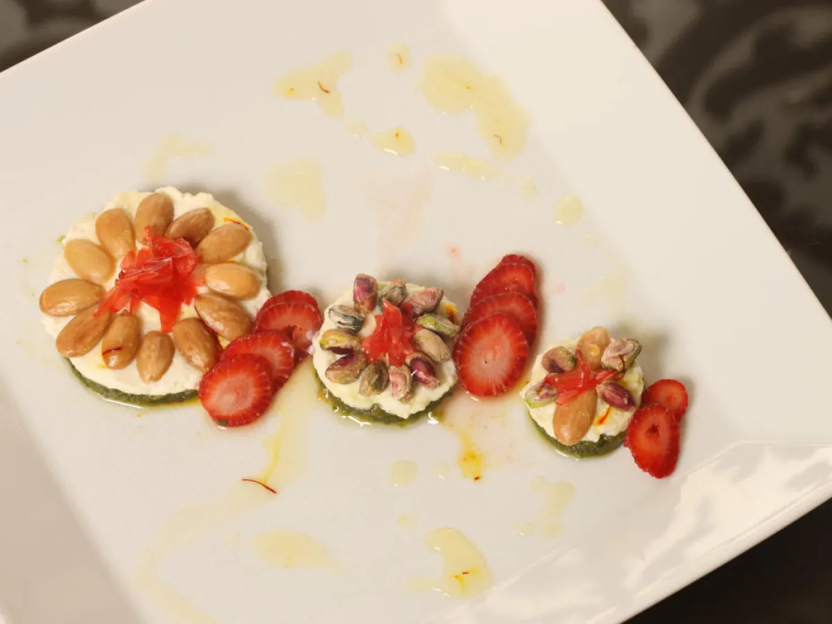 3 ـ يُمدّ ويقرّص، ويُزيّن بالقشطة واللوز والفستق الحلبي وزهر الليمون.