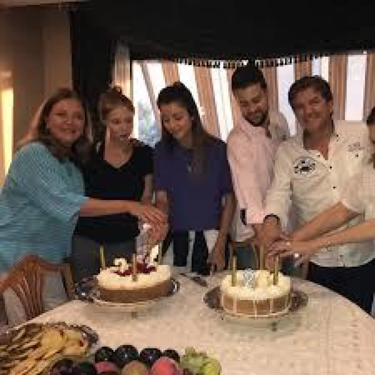 ونشر الفنان وليد توفيق صورة تجمعه بزوجته وولديه الوليد ونورهان وهما يقطعان قالبيّ عيد ميلادهما، وعلّق عليها": المال والبنون زينة الحياة الدنيا وليد ونور عقبال المية".
