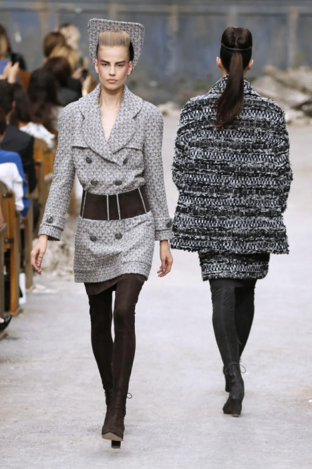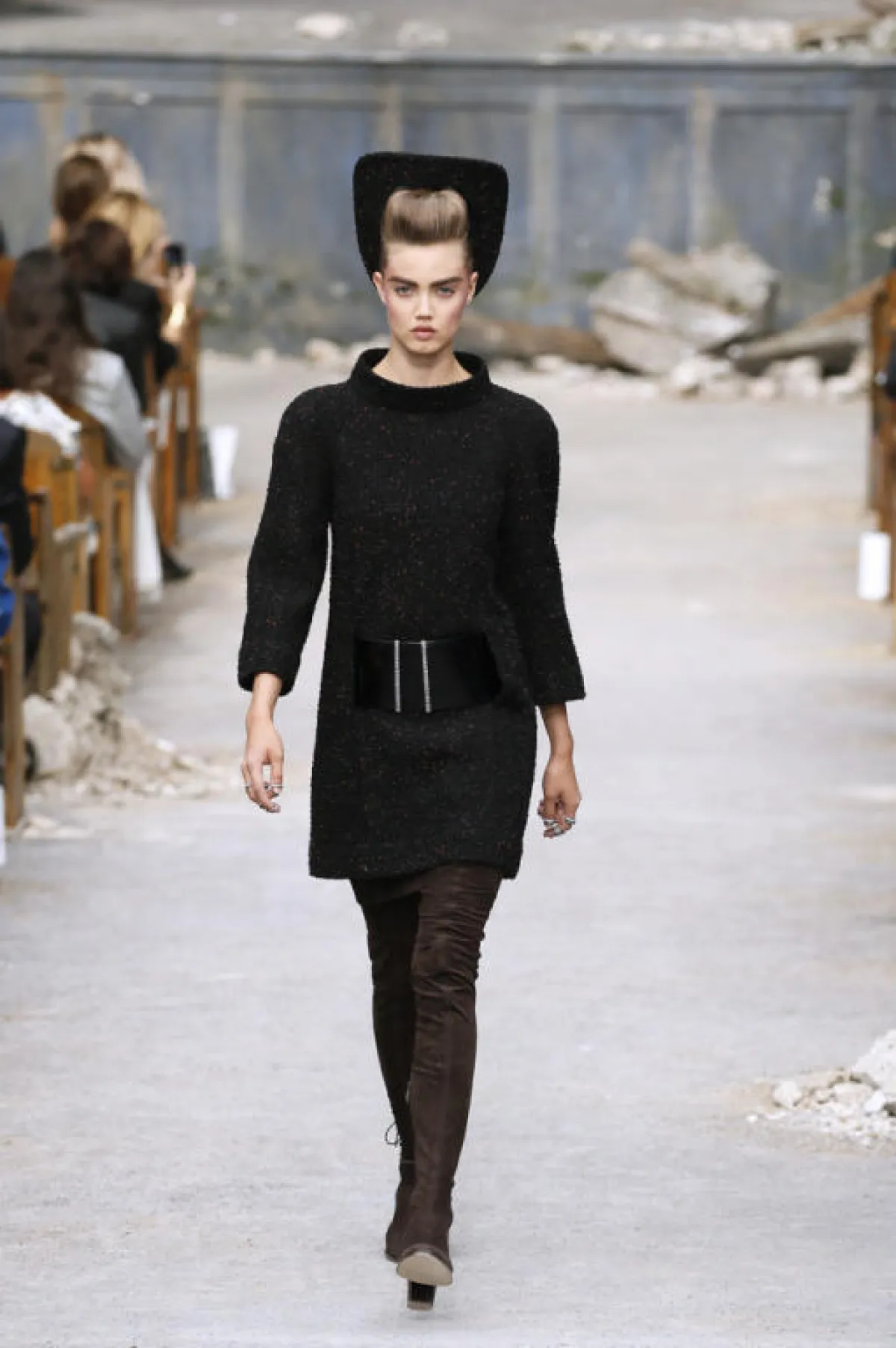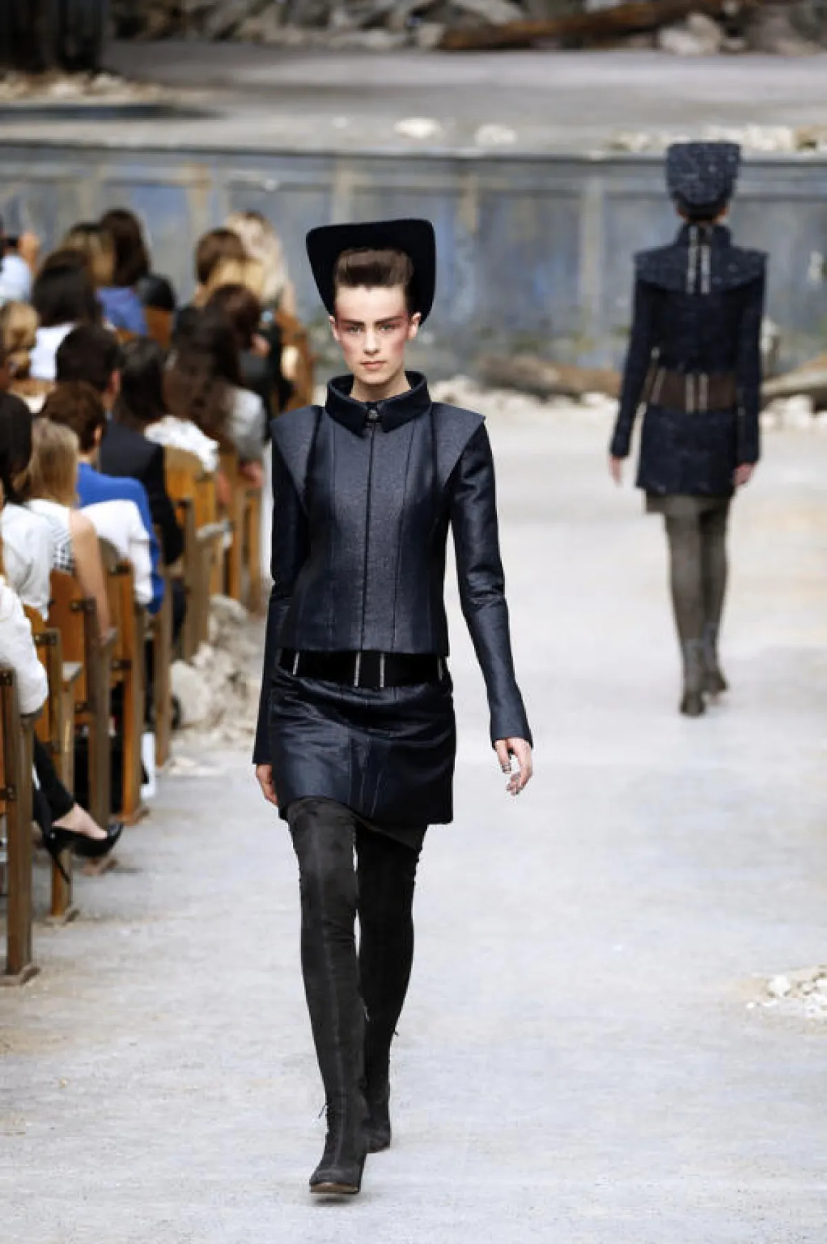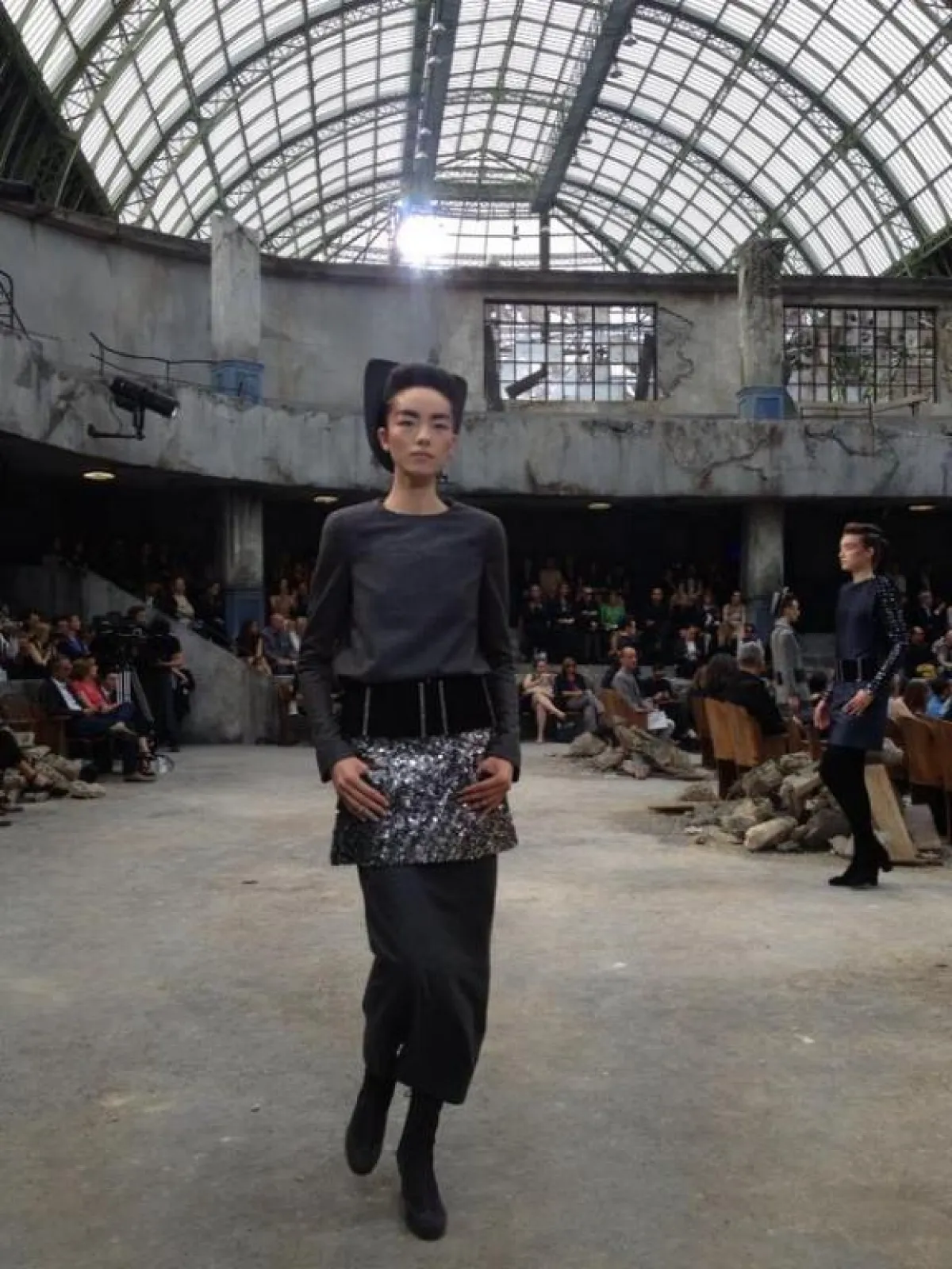 إنّ النجاح الذي يحصده كارل لاغرفيلد، من سنة إلى سنة، يسمح له بتحقيق ما يُريد من دون أيّ رادع. فلهذا المصمّم قوّة التخيّل والإبداع التي يحسده عليها الكثيرون. ومرّة أخرى، يُدهش هذا اللاغرفيلد عاشقي الموضة بديكور أقلّ ما يُقال عنه "إنّه غريب"، ويجعلنا نتساءل عن القصد والهدف من مثل هذا الديكور، الذي يُعطي الانطباع أنّنا في قاعة سينما أو مسرح أو أوبرا، دمّرت بصاروخ، فباتت أكواماً من الصخور المبعثرة.