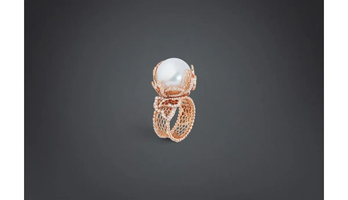 بإمكانك أن تختاري من مجموعة ديور ديور ديور Dior Dior Dior التي قدمتها ديور فاين جوليري Dior Fine Jewellery مؤخراً، خاتم دانتيل Dentelle ذات التصميم الناعم والمصنوع من الذهب الوردي ويتوسّطه حجر من اللؤلؤ الأبيض.