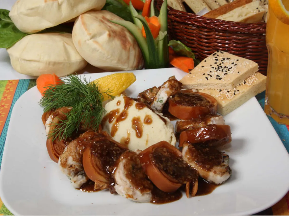 ويُمكن تقديم هذا الطبق مع البطاطا البوريه أو المشوية أو الخضر المعدّة بطريقة "سوتيه".