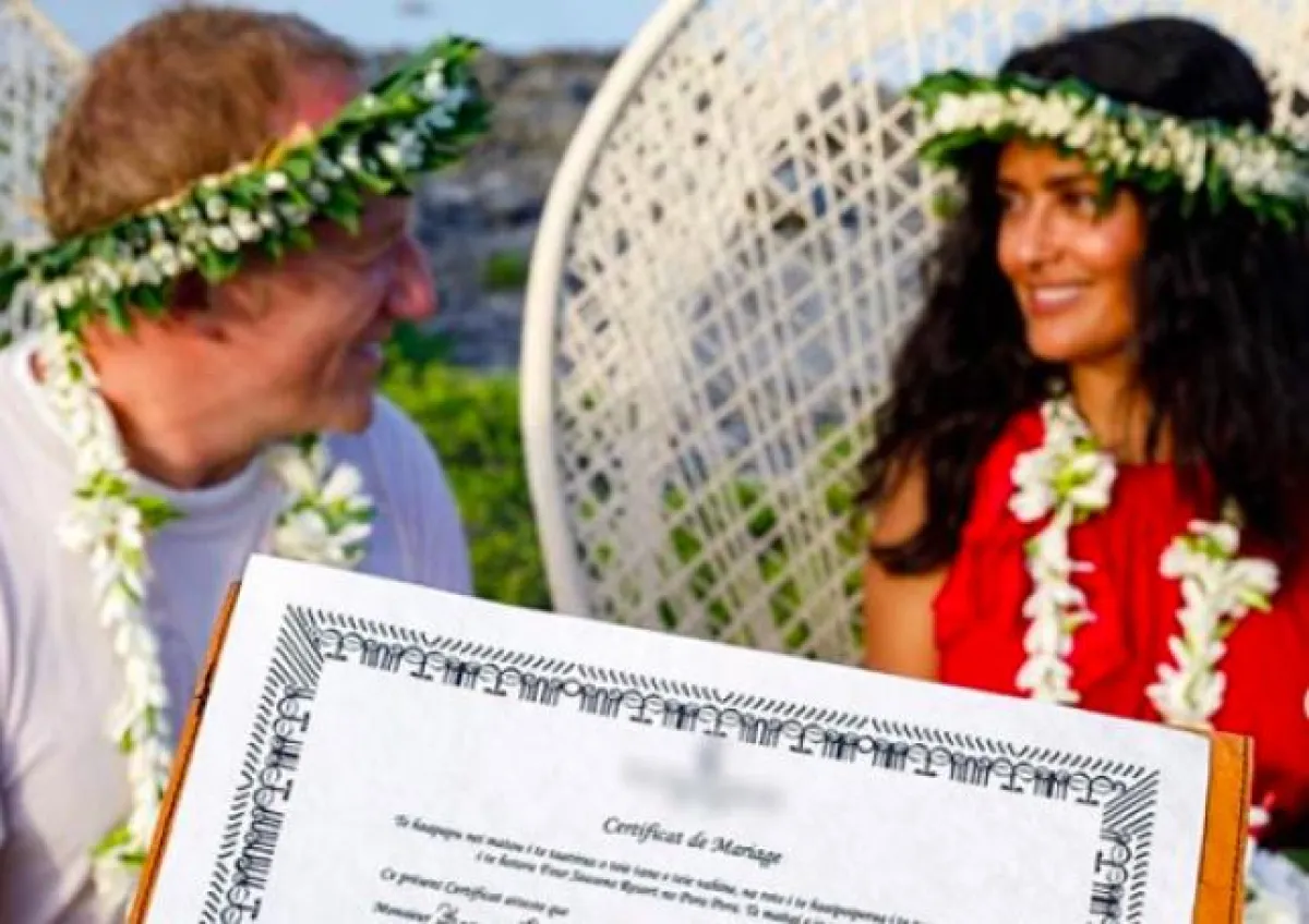 لحظات رومنسية ومفاجئة عاشتها النجمة العالمية سلمى حايك Salma Hayek مع زوجها رجل الأعمال الفرنسى فرانسوا أونري بينو françois-henri Pinault الذي فاجأها خلال عطلة لهما في جزيرة Bora Bora.