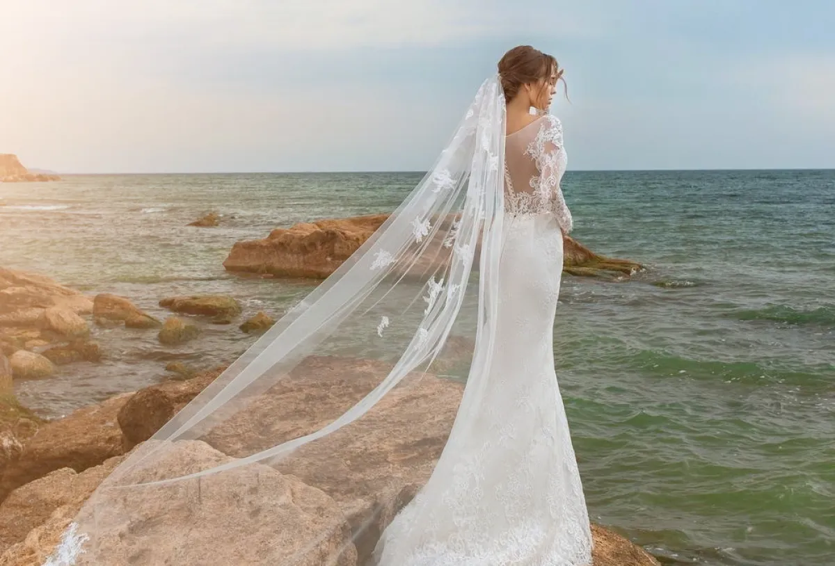 إن أردتِ اعتماد طرحة طويلة ومزخرفة، فننصحكِ باختيار فستان بسيط بعض الشيء، لكي لا يظلّل على الطرحة اللافتة للنظر.