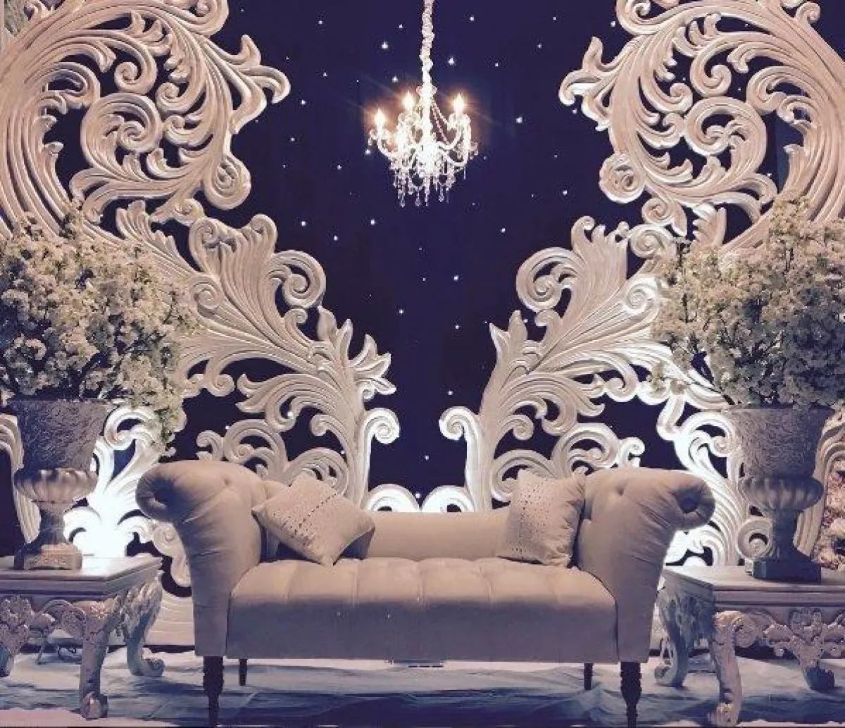 أما إذا كنتِ تريدين زفافًا يخلّد في ذاكرة الحاضرين، فبإمكانكِ تصميم كوشة أفراح أسطورية، تزيّن بالإنارة والكريستال والأباجورات التي تغيّر شكل القاعة تمامًا، وكأنها ملكة تُزفّ لكرسي الحكم...