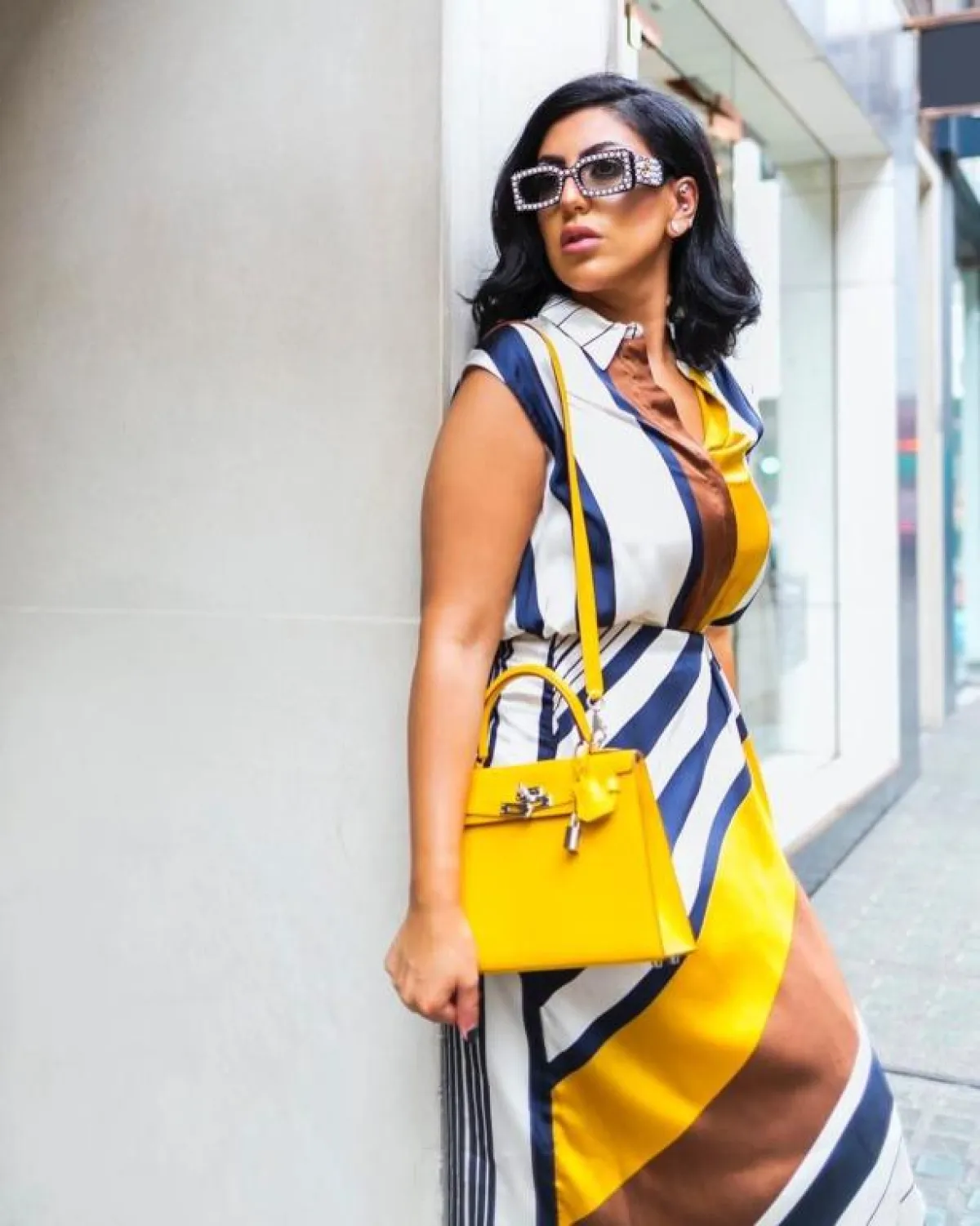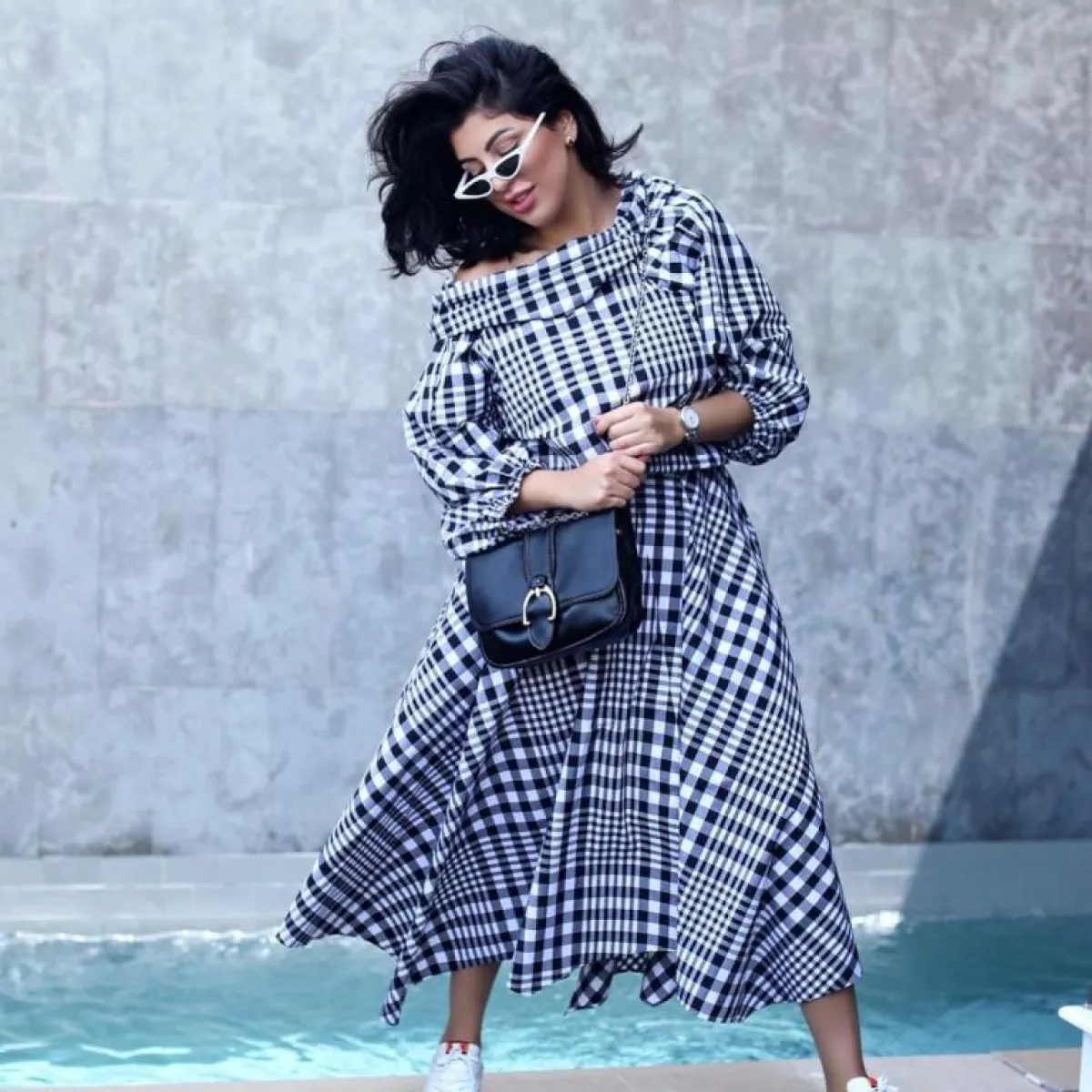 تعلم دانة الطويرش أن الموضة أصبحت لا ترفض الممتلئات أو صاحبات الوزن المتوسط، لكن لا تتنازل عن الخصر النحيف، لذا تعتمد بشكل متكرر على حزام الخصر العريض أو حقيبة الخصر التي تتصدر الموضة لترسم فاصل وهمي بين الحزء العلوي والسفلي من الجسد، وتضيف هذه الطريقة لمسة أنوثة تخفي عيوب القوام.