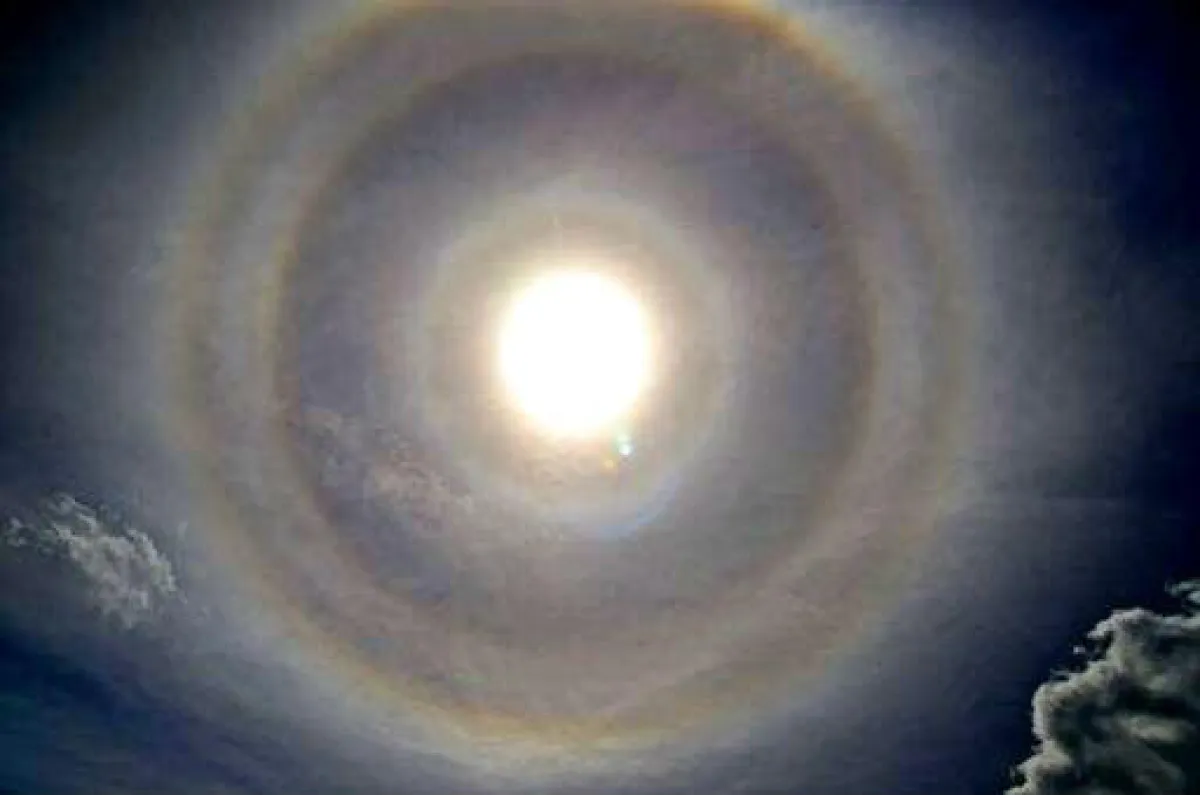 تسمى هذه الأشكال المضيئة بالهالات الجليدية، لأنها تحدث بسبب أشعة الشمس التي تسطع خلال بلورات الجليد في السحب الرقيقة، وعادةً ما تكون الهالات الثلجية بسيطة كعمود من الضوء وحيد أو حلقة غير معقدة، ولكن في هذه الحالة مجموعة معقدة من الهالات ظهرت في قبة السماء، منها هالة 22 درجة وهالة 46 درجة، قوس علوي وزوج من اللطخات الضوئية من يمين ويسار الشمس.