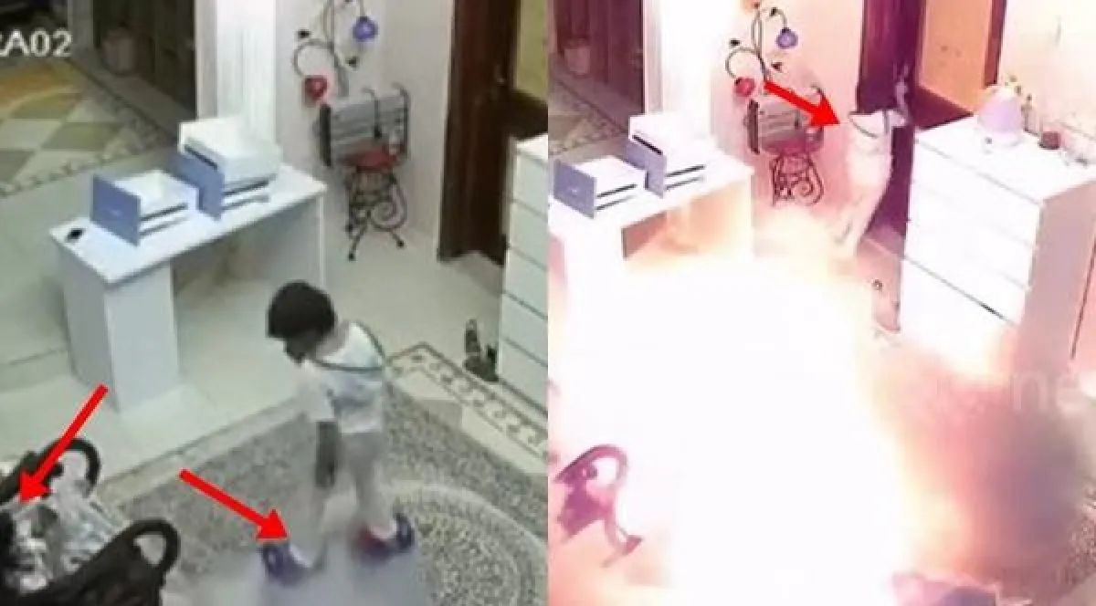 ويُظهر فيديو وثّق الحادثة التي حصلت في شرق الصين، اللحظة التي بدأ يتصاعد فيها الدخان من اللوح، حين كان الصبي يقف عليه، فسرعان ما قفز وهرب قبل أن ينفجر ويطلق شرارات من اللهب، أمام أخته التي كانت تجلس على كرسي داخل الغرفة.