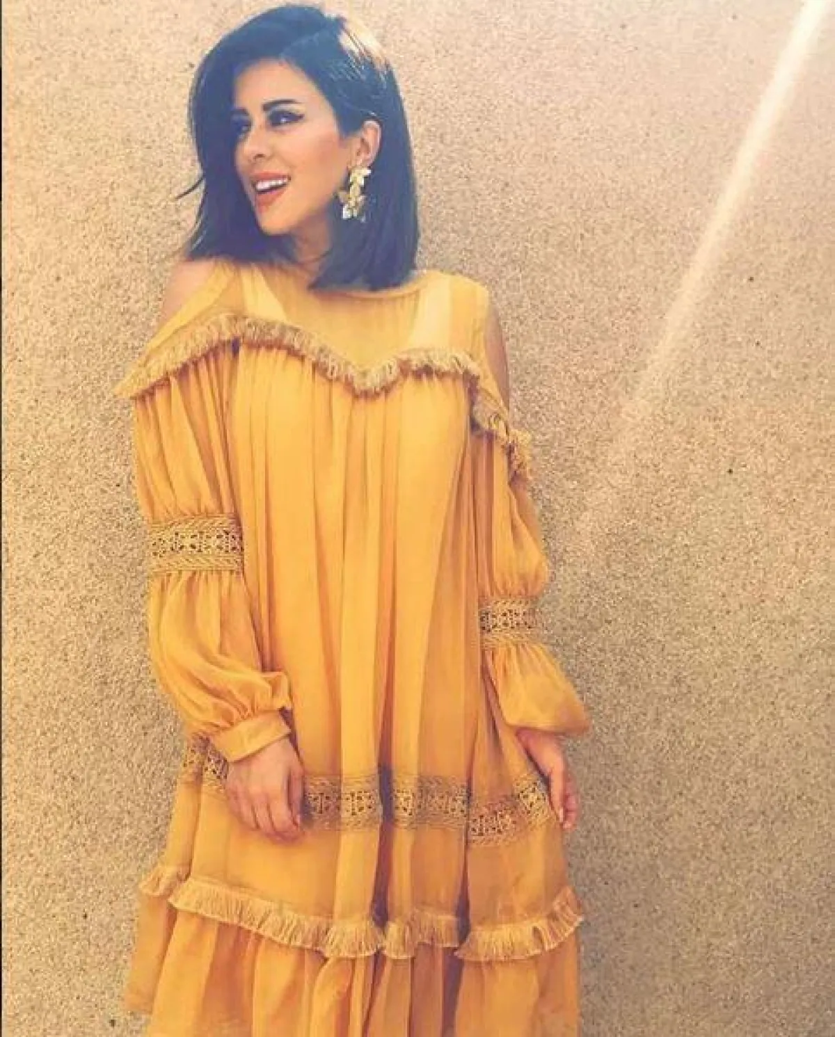 من بينهن كانت الإعلامية البحرينية نور خالد الشيخ، التي يبدو أنها تميل إلى التحرر من أجواء الستوديو الرسمية بإطلالاتها اليومية بـ الفساتين المريحة.
