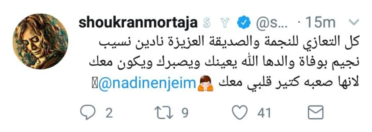 وكانت نادين نجيم قد طلبت الدعاء لوالدها قبل عدة أيام ، بعد دخوله المستشفى ولكن من دون ان تكشف عن مرضه.