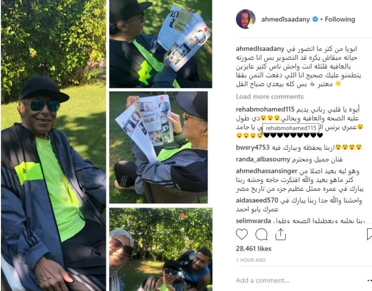 أحمد صلاح السعدني نشر الصور عبر حسابه الشخصي بموقع إنستقرام وعلق عليها قائلاً: "ابويا من كتر ما اتصور في حياته مبقاش يكره قد التصوير بس انا صورته بالعافيه قلتله انت واحش ناس كتير عايزين يتطمنو عليك صحيح انا اللي دفعت التمن بقفا معتبر بس كله بيعدي صباح الفل".