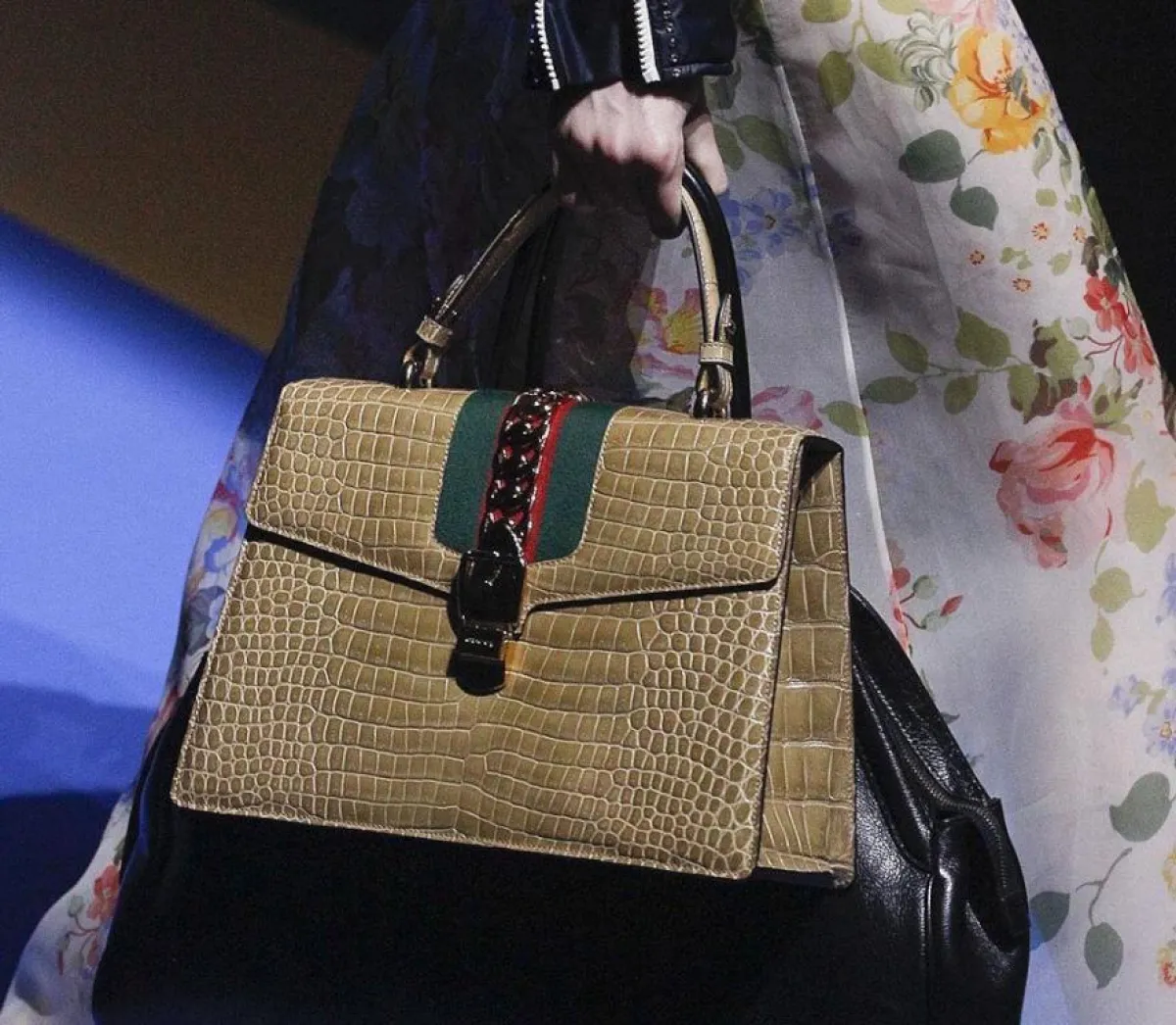 تصدرت علامة هيرمس Hermes بحقائب جلد التمساح الذي زين تصميم Birkin والذي اشتهرت به العلامة، حتى أنه جاء على رأس قائمة الحقائب الأعلى ثمناً في العالم، وتمكنت علامة لويس فيتون Louis Vuitton أن تشعل المنافسة مع فيندي Fendi وغوتشي Gucci ليقدموا في النهاية مجموعة رائعة من حقائب جلد التمساح تصدرت الموضة كاختيار فاخر للمرأة.