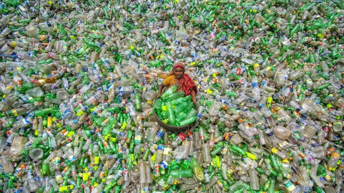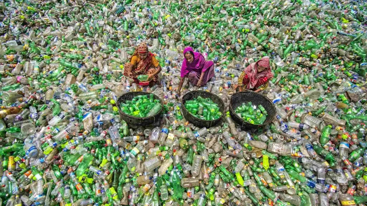 صور مدهشة تنقل لنا عمالاً بسطاء صنعوا لأنفسهم طريقًا للكسب من مئات اآاف الزجاجات البلاستيكية الفارغة عن طريق فرزها بالألوان والأحجام، ثم إرسالها إلى المصانع لإعادة تدويرها فى بورجا شمال بنجلادش.