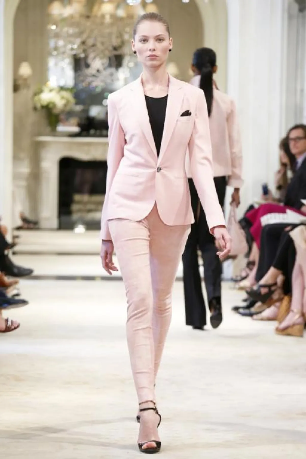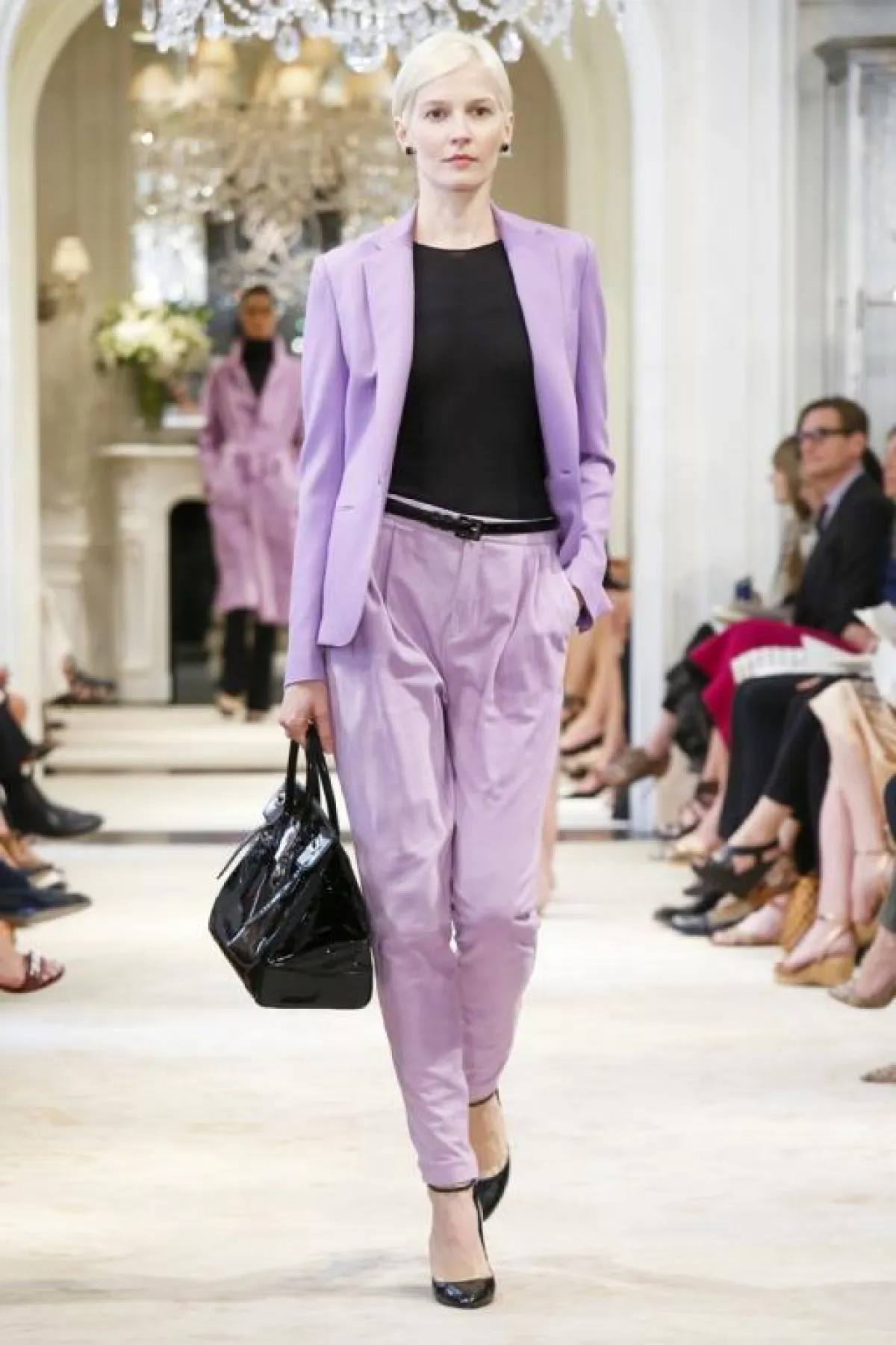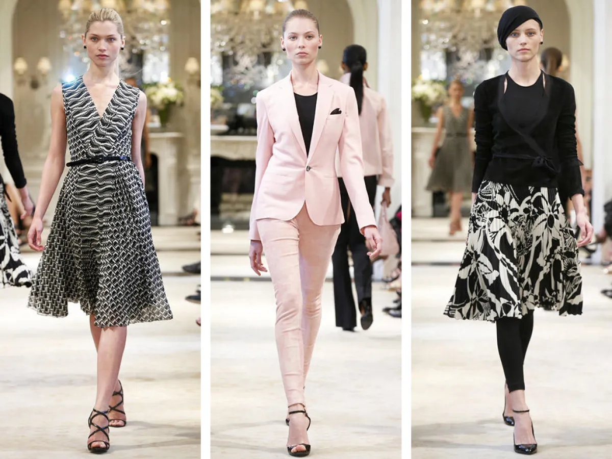دفعت بنا مجموعة رالف لوران Resort 2014، إلى الحلم بعاصمة الموضة باريس، وتحديداً برحلة قصيرة إلى أوبرا باريس حيث تُعرض أجمل عروض الباليه في مدينة الرومانسية. بدا لنا أن المجموعة مستوحاة من ثياب راقصات الباليه الجميلة عبر الطلات الزهرية الباهتة. وقد برز من بين التصاميم فستان بزمام مزوّد بقميص ملفوف، فضلاً عن فستان من الشيفون مع قماش شفاف، مزيّن بحذاء بكعب عال كالحذاء الذي ترتديه راقصات الباليه وثوب خاص بالراقصين فوقه تنورة زهرية ناعمة تطوف. وإلى جانب كلّ هذه الأنوثة والرومانسية، ظهرت أيضاً الكثير من القطع السوداء الحديثة لكي تجمع بين الرقي والأناقة التي تميّز نساء باريس.