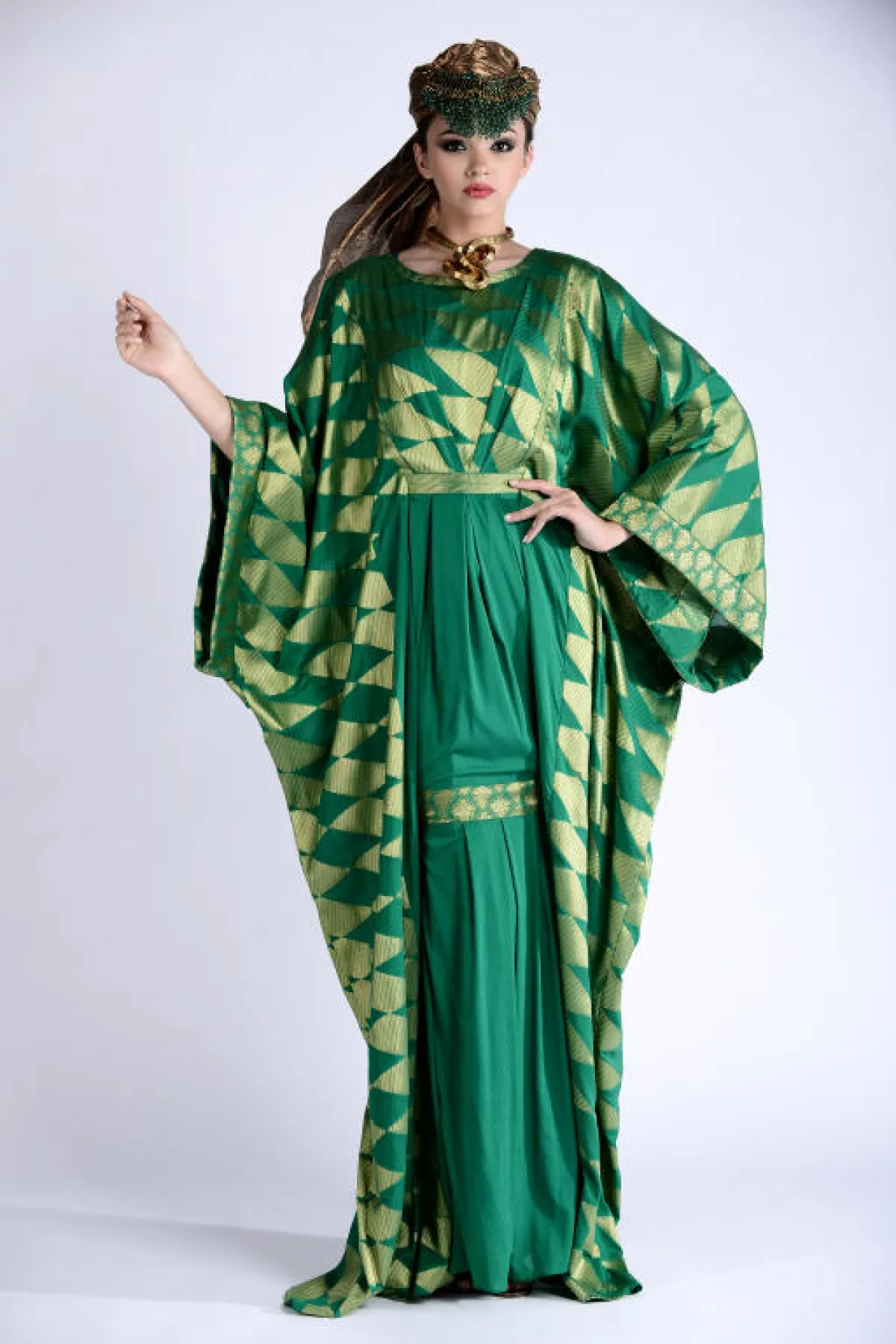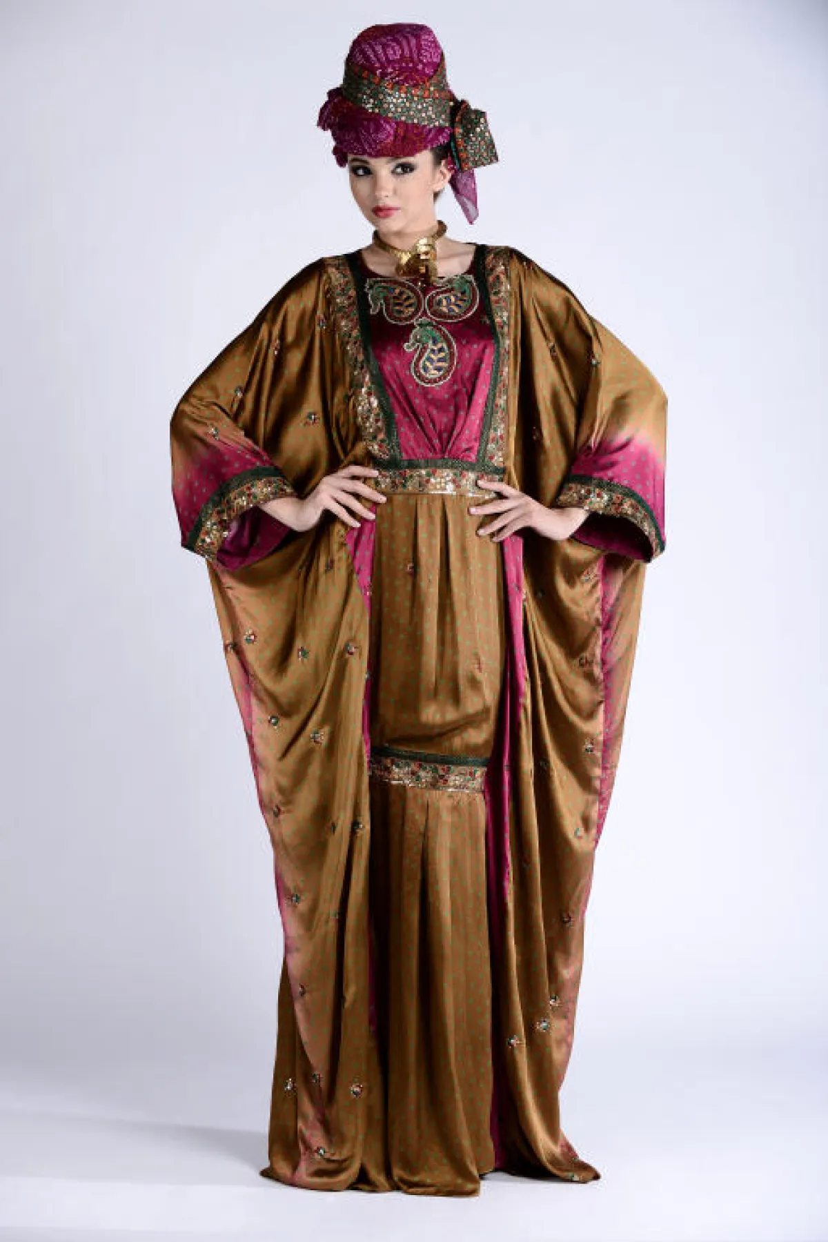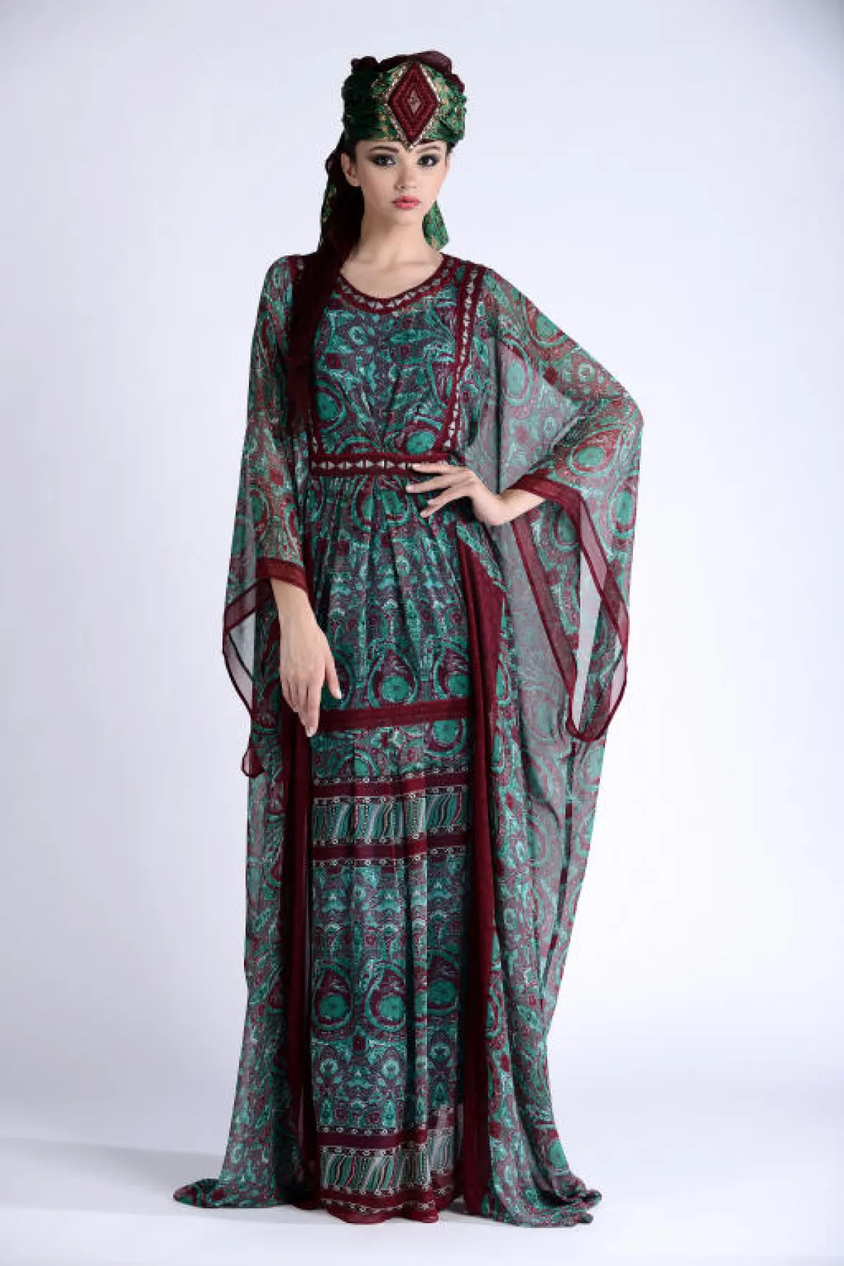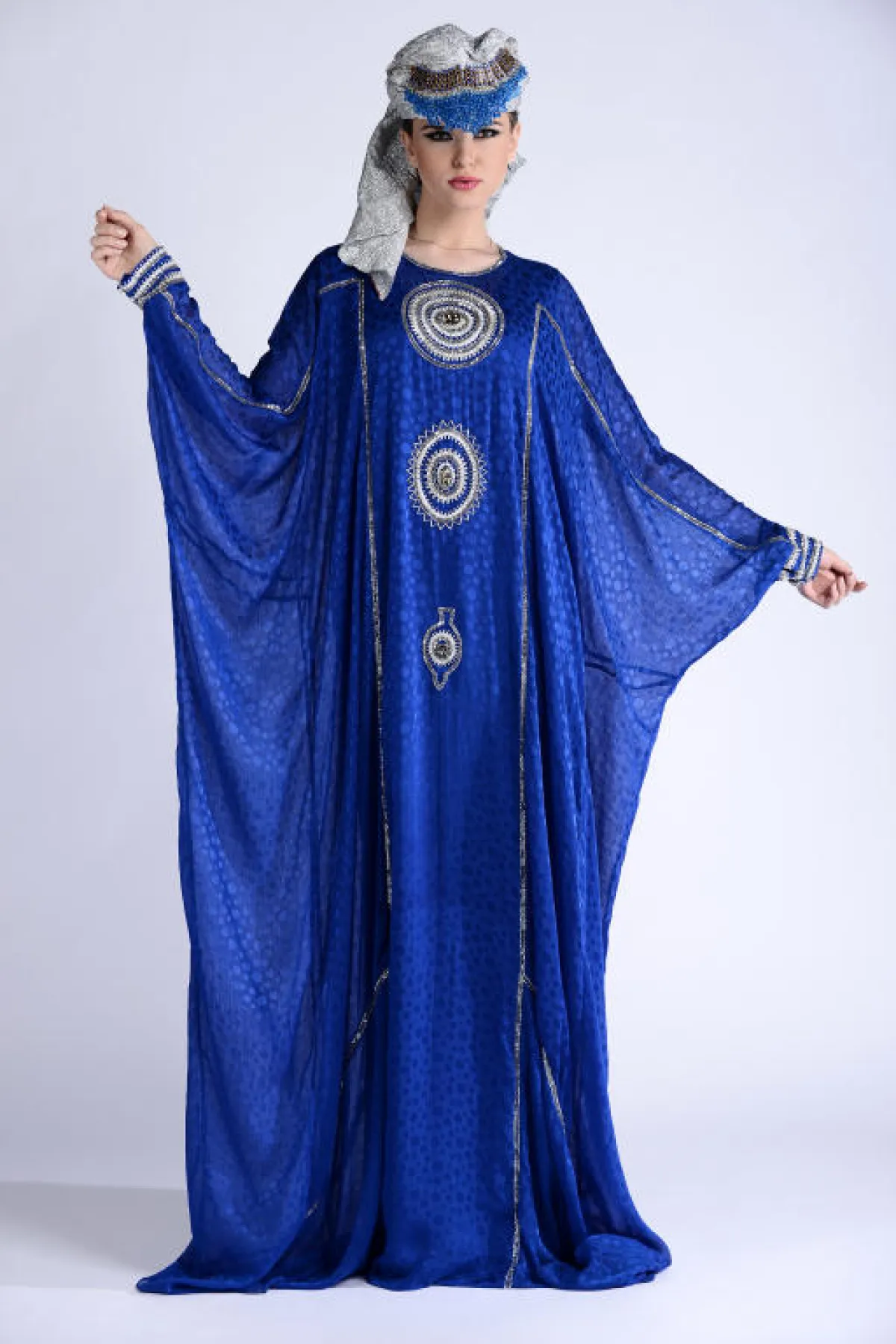 زخرت المجموعة بالعديد من التنويع ما بين جلابيات بقماش واحد، أو عدّة أقمشة متداخلة في الجلابية الواحدة بين السادة والمنقوش والمطبّع، وكذلك بعضها بلون واحد بينما البعض بعدّة ألوان، كما ضمّت المجموعة جلابيات بأحزمة وأخرى بدون أحزمة، ومنها ما هو بتطريز وشك على الصدر، والأكمام ما بين العريضة والضيّقة وأشكال عامّة إما مخصّر أو منسدل على شكل الجسم، كلّها تفاصيل تواجدت وتشكّلت في جلابيات المجموعة، وساعدها في ذلك الخامات المستخدمة، لتتناسب مع المناسبة التي يمكن ارتداء الجلابية فيها. أما الألوان، فتقريباً كان الحضور لجميع الألوان وبدرجات مختلفة منوّعة، فظهر الأبيض، الأسود، الأخضر، البيج، البرتقالي، البني، الأصفر، الزهري، الخمري والأزرق، كلها ألوان مستوحاة من البيئة الشرقية بطريقة ذكيّة ومبتكرة...