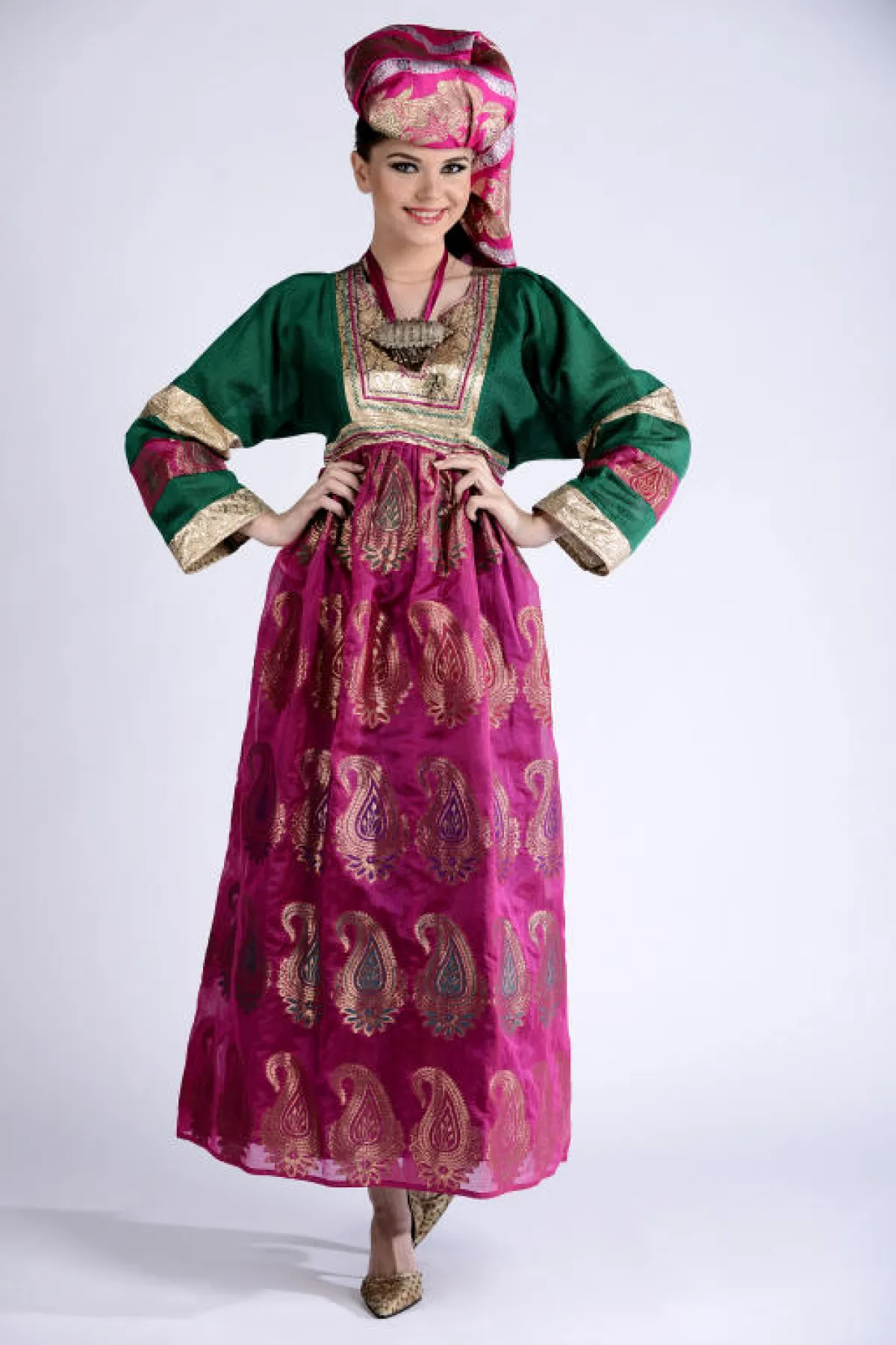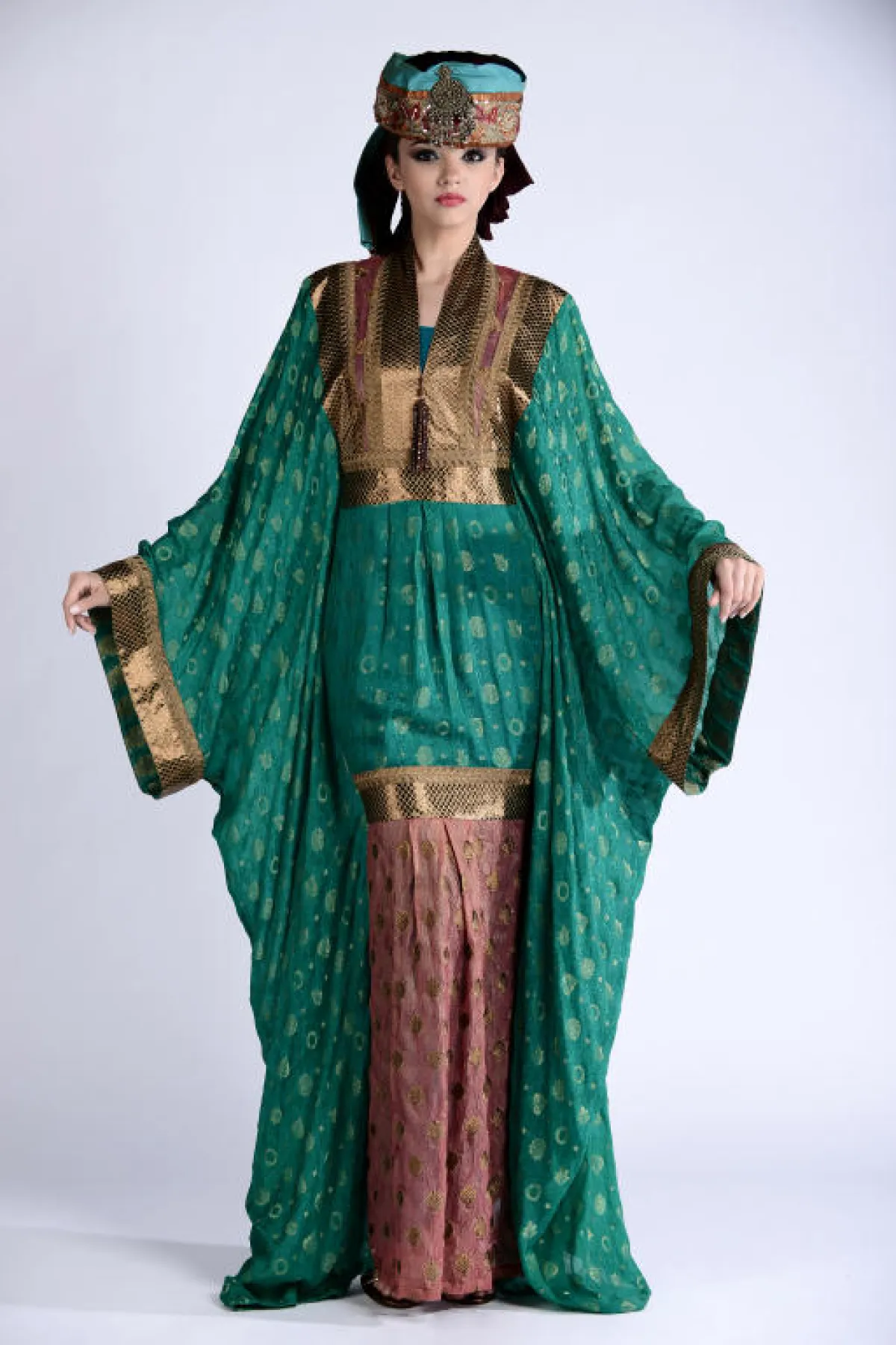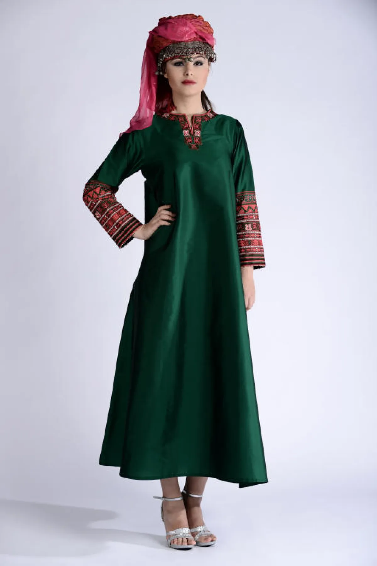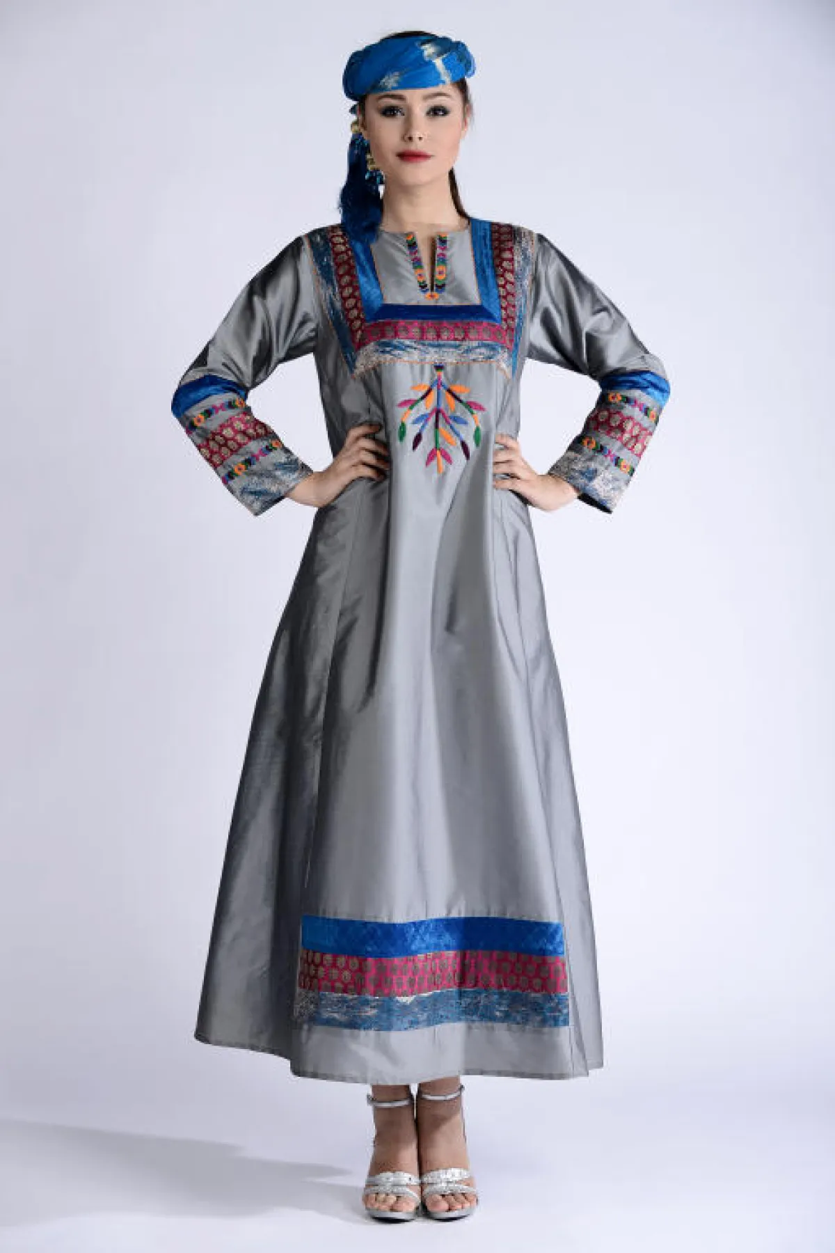 زخرت المجموعة بالعديد من التنويع ما بين جلابيات بقماش واحد، أو عدّة أقمشة متداخلة في الجلابية الواحدة بين السادة والمنقوش والمطبّع، وكذلك بعضها بلون واحد بينما البعض بعدّة ألوان، كما ضمّت المجموعة جلابيات بأحزمة وأخرى بدون أحزمة، ومنها ما هو بتطريز وشك على الصدر، والأكمام ما بين العريضة والضيّقة وأشكال عامّة إما مخصّر أو منسدل على شكل الجسم، كلّها تفاصيل تواجدت وتشكّلت في جلابيات المجموعة، وساعدها في ذلك الخامات المستخدمة، لتتناسب مع المناسبة التي يمكن ارتداء الجلابية فيها. أما الألوان، فتقريباً كان الحضور لجميع الألوان وبدرجات مختلفة منوّعة، فظهر الأبيض، الأسود، الأخضر، البيج، البرتقالي، البني، الأصفر، الزهري، الخمري والأزرق، كلها ألوان مستوحاة من البيئة الشرقية بطريقة ذكيّة ومبتكرة...