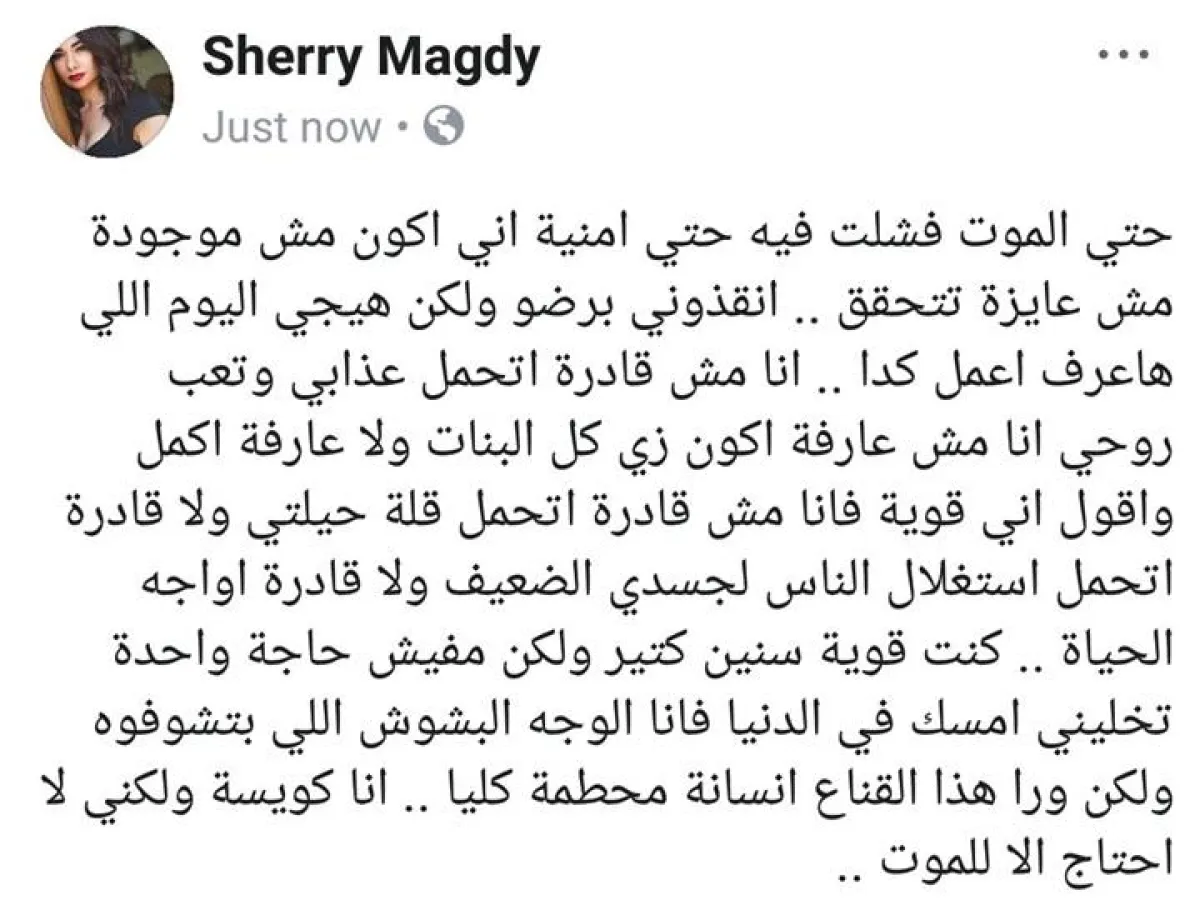 رسالة شيري مجدي الحزينة قبل الحذف