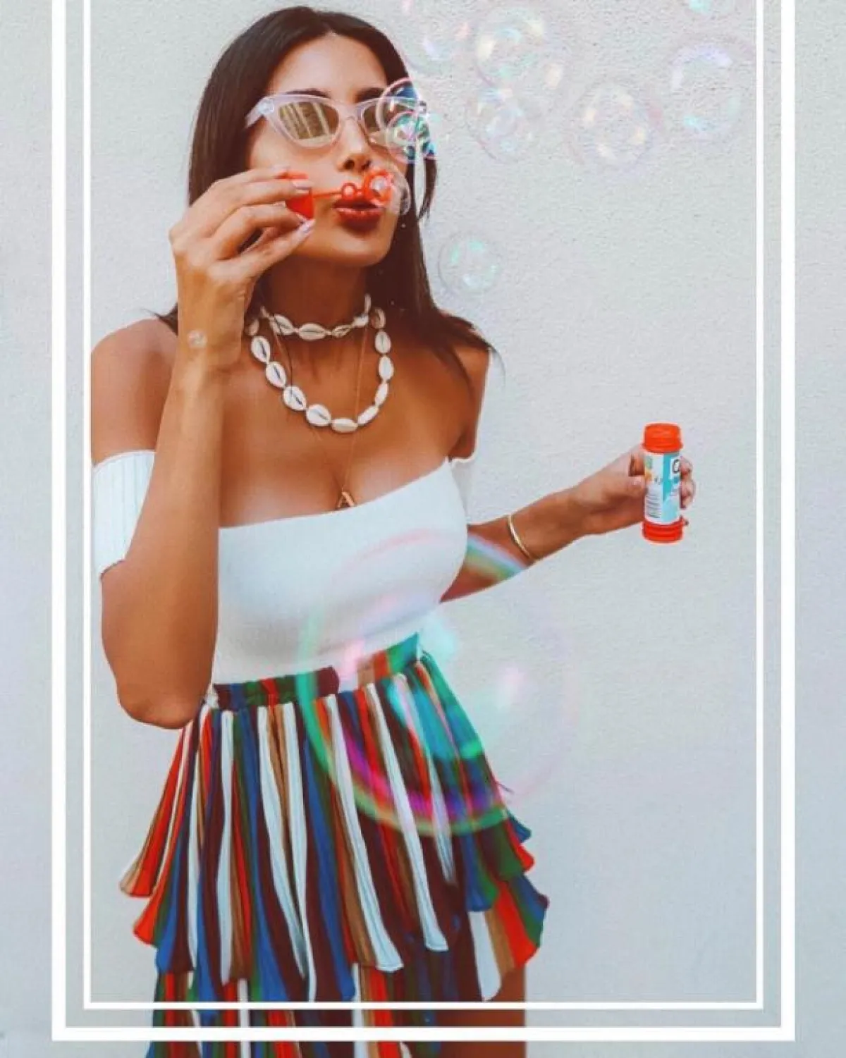فكان عقد الصدف الأبيض رفيق المدونة رانيا فواز طيلة الصيف ومع إطلالات متنوعة لا تقتصر على إطلالات الشاطئ، أما مدونة الموضة شهد، فذهبت إلى عقد طويل مكون من أصداف البحر، ونسقته أيضاً مع إطلالات عصرية تناسب الصيف، وإطلالات أخرى مسائية، أما المدونة أليس عبد العزيز فجمعت بين تصميم الشوكر والعقد الطويل بحسب الإطلالة التي وقع اختيارها عليها، وأخيراً نتوقف عند المدونة جيهان غندور التي لم تتخلَّ عن عقد الأصداف البحرية طيلة الصيف.
