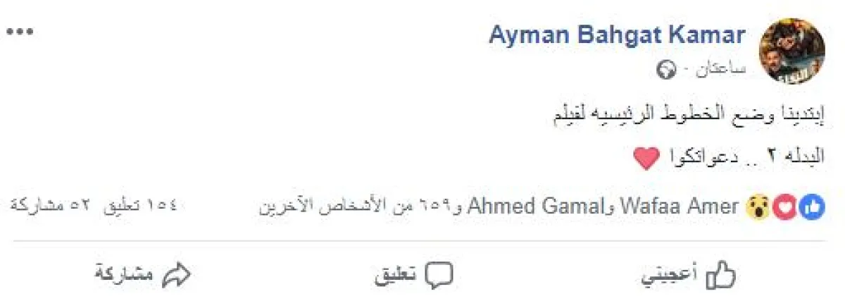 أيمن بهجت قمر أعلن الخبر رسميًّا عبر صفحته الرسمية على موقع الفيس بوك، قائلًا: ابتدينا وضع الخطوط الرئيسية لفيلم البدلة 2.. دعواتكم، وتلقّى تهاني عدة من المقربين، وفي مقدمتهم النجمة وفاء عامر، ولكنّ المفارقة أنّ عددًا لا بأس به رفض الفكرة، مؤكدًا أنّ تقديم جزء جديد سيضيع نجاح الجزء الأول، وأبدى قمر تفهّمه لمخاوفهم.