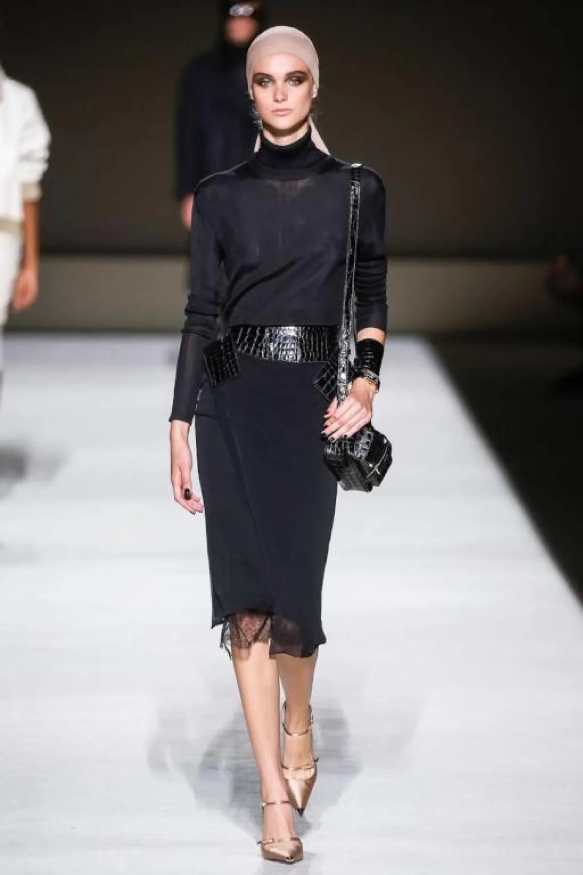 شاهدنا اكسسوارات رائعة ضمن عرض توم فورد Tom Ford أبرزها كانت الحقائب الجلدية ذات الأحجام المتنوعة، كما الأحذية النسائية الأنيقة ذات المقدمات المدببة، والأهم من كل ذلك التوربان الذي سيطر على معظم اطلالات العرض وكان أحد أبرز صيحات الموضة.